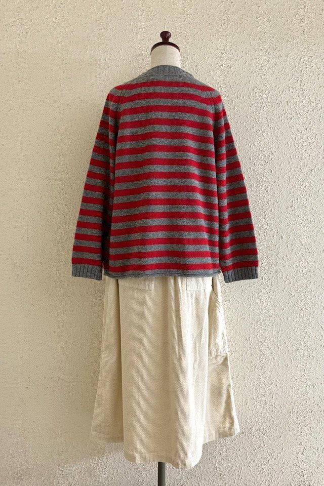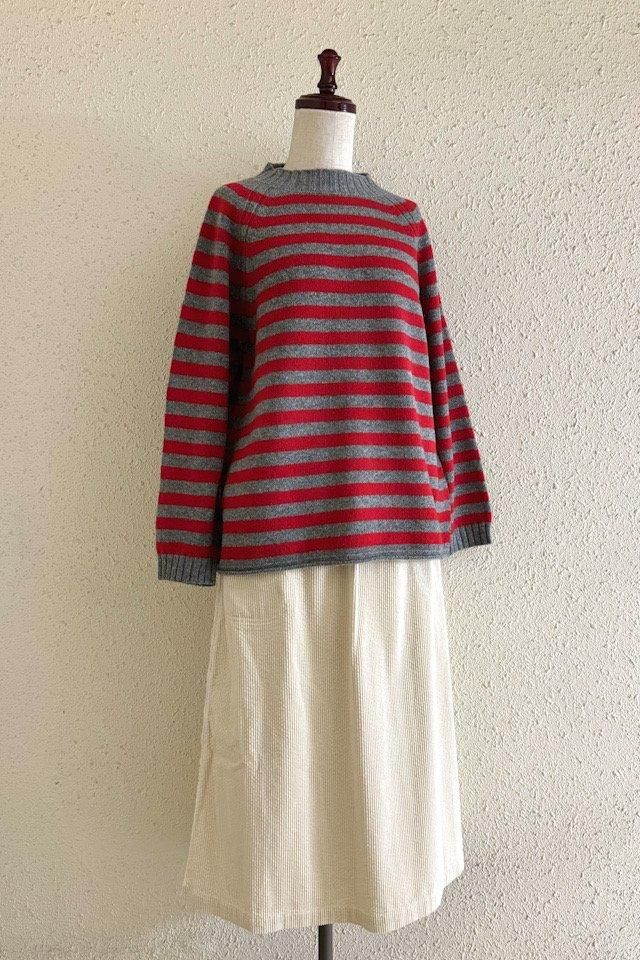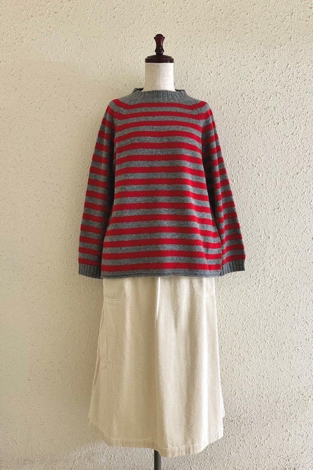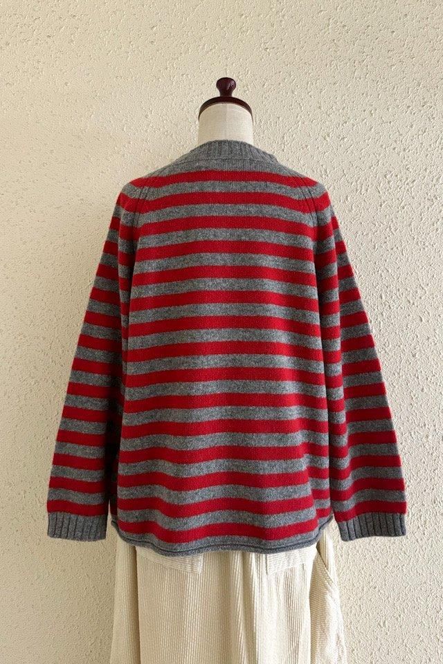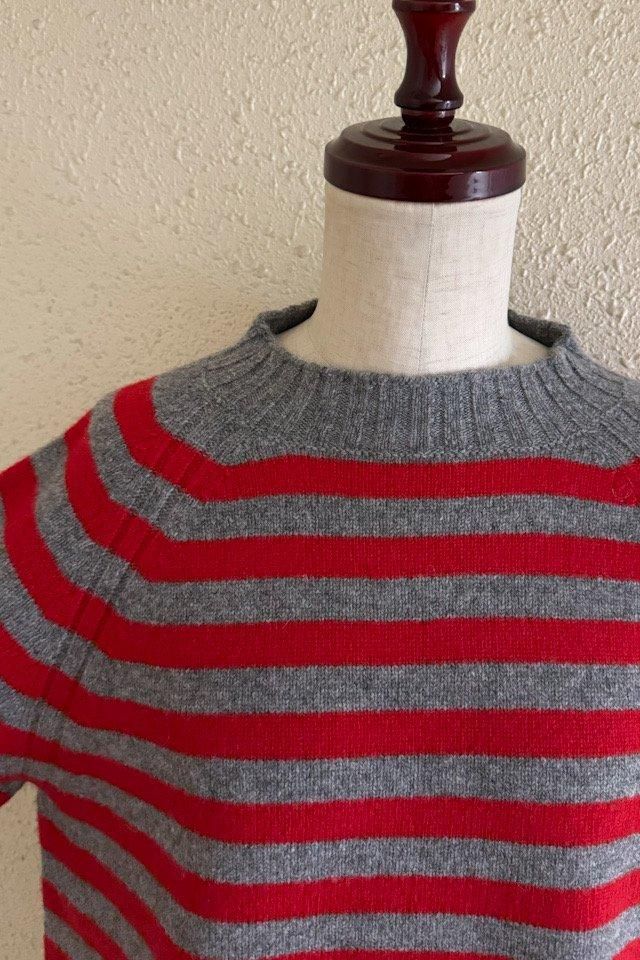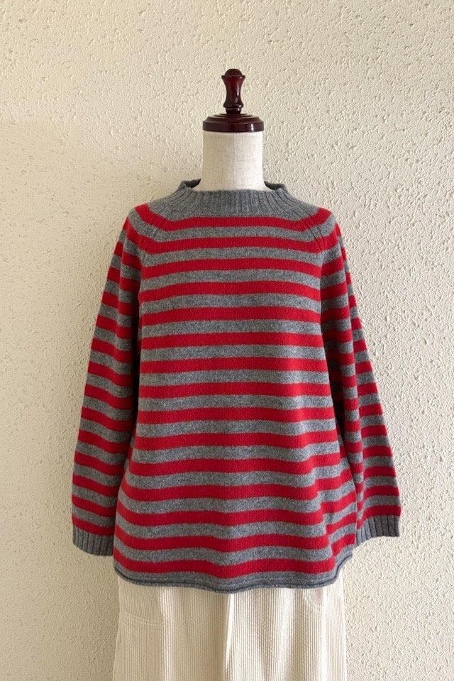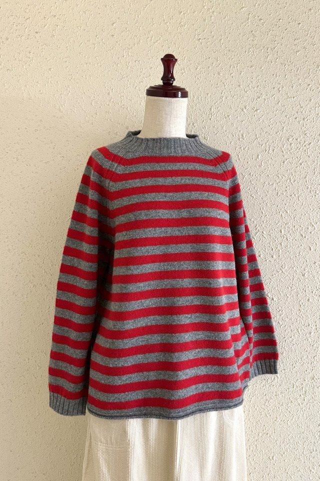 to touch ソフトウールボーダープルオーバー グレー×レッド