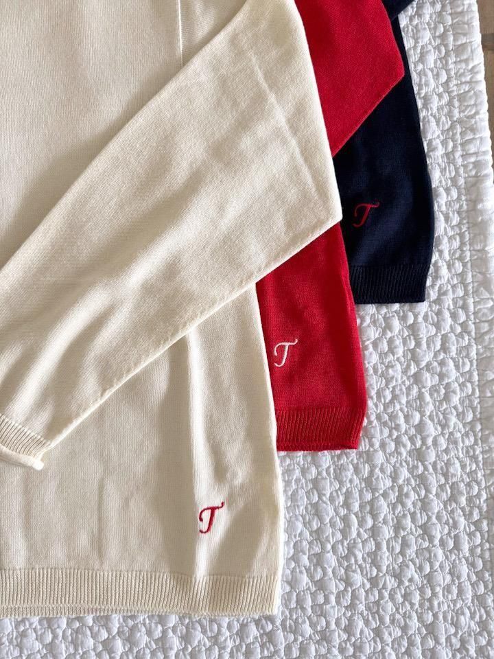 裾の"T"のイニシャル刺繍がさりげなく可愛いポイント。