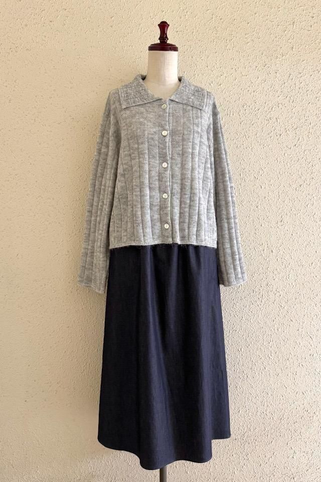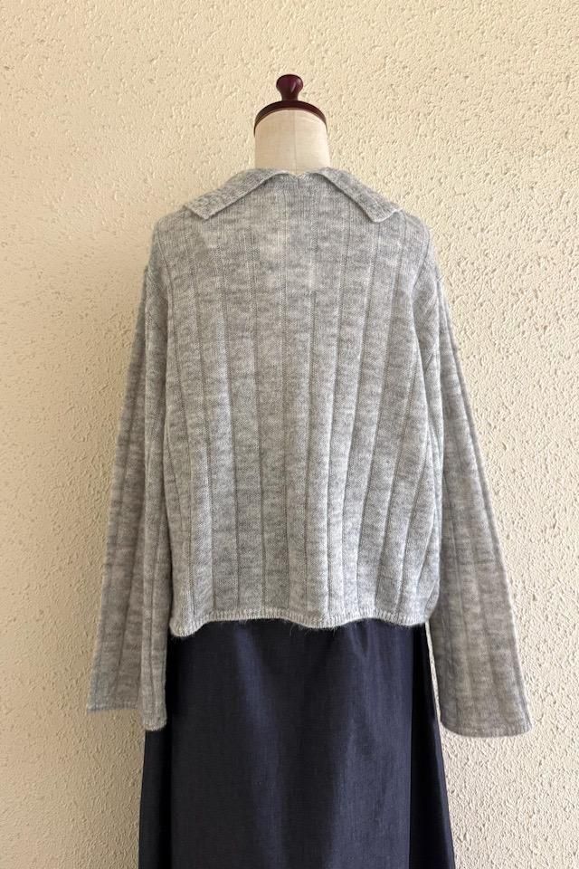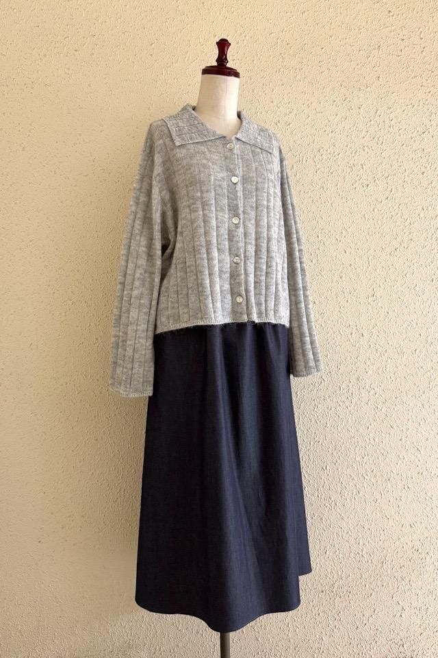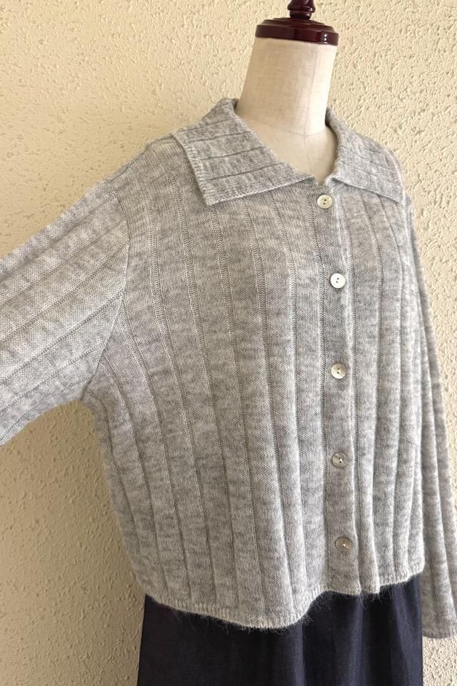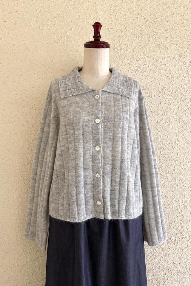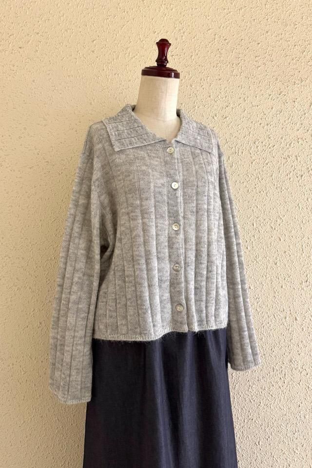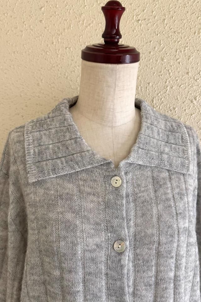Porter des boutons ワイドカラーニットカーディガン グレー