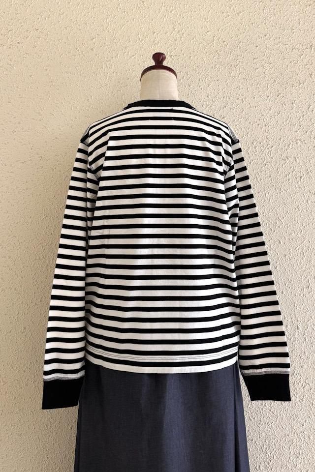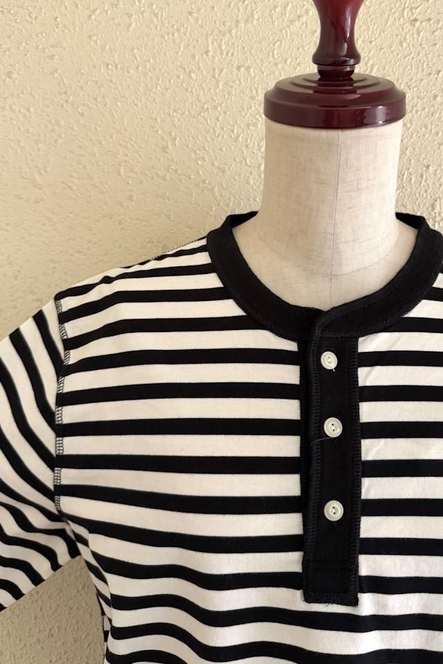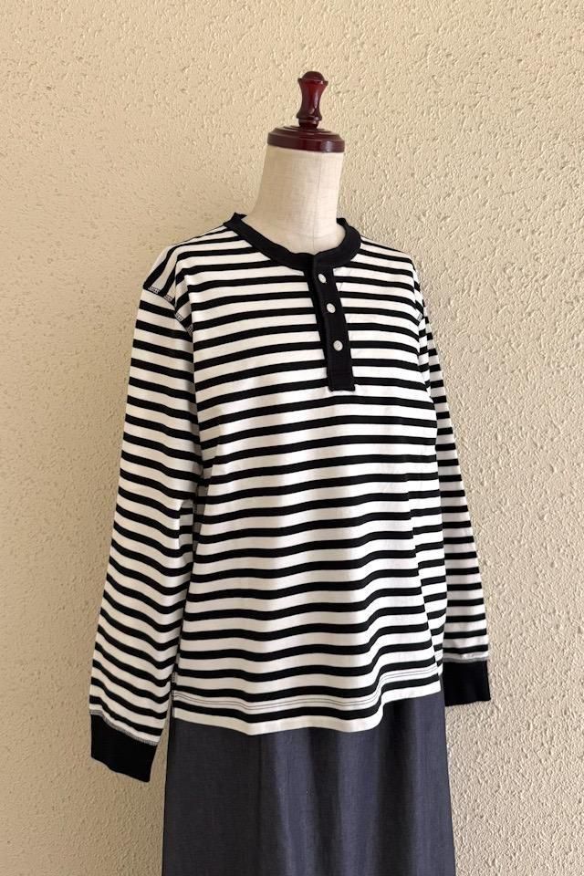 OUVERT KANDOU天竺ボーダーヘンリーネックプルオーバー オフ×ブラック