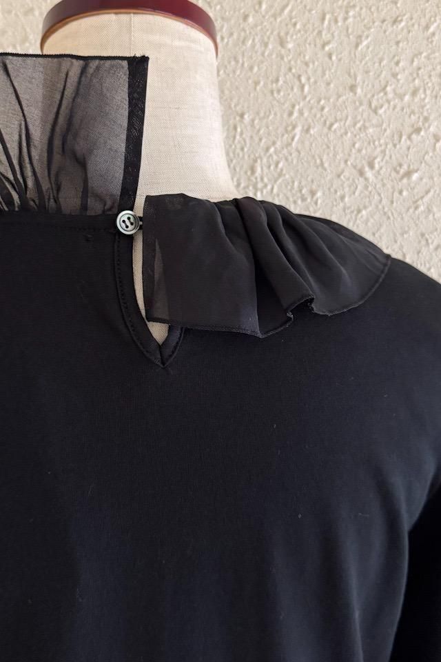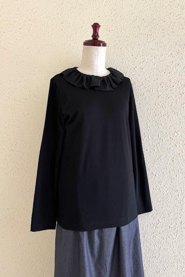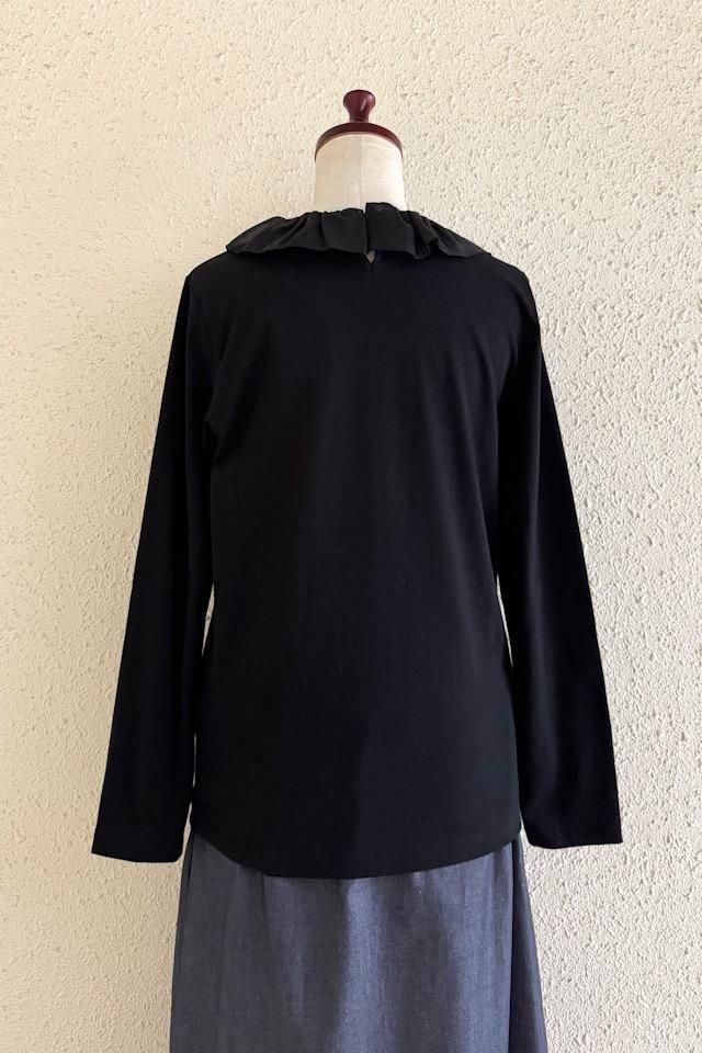 フリルカラーを飾ったカジュアルで可愛らしいカットソーTシャツ。