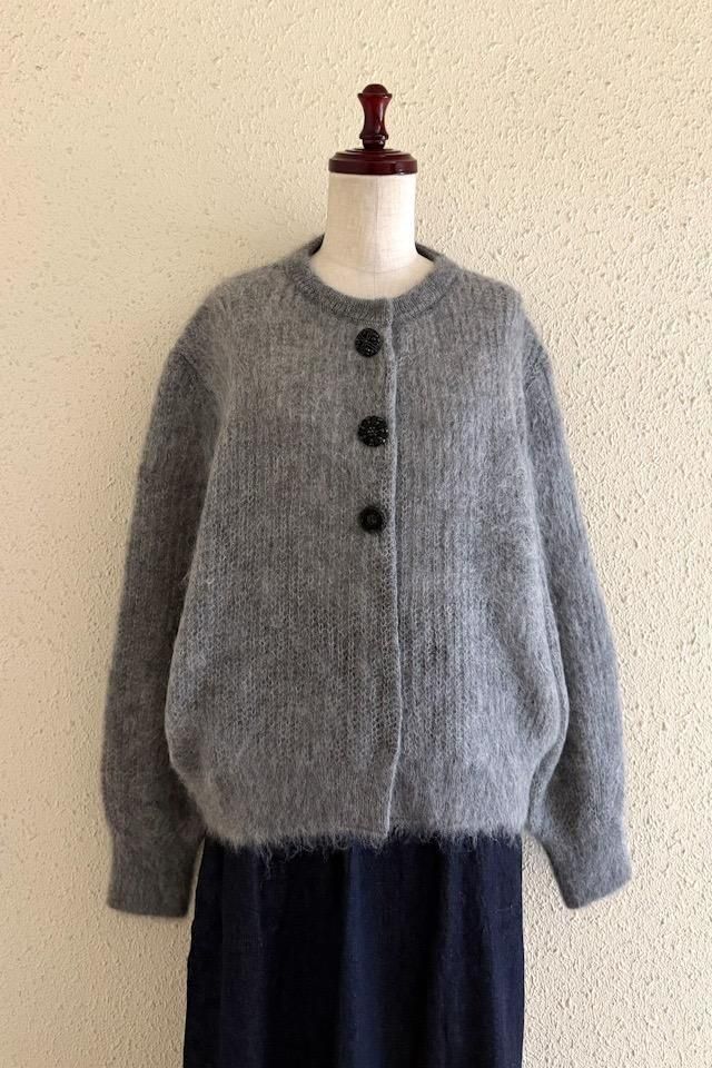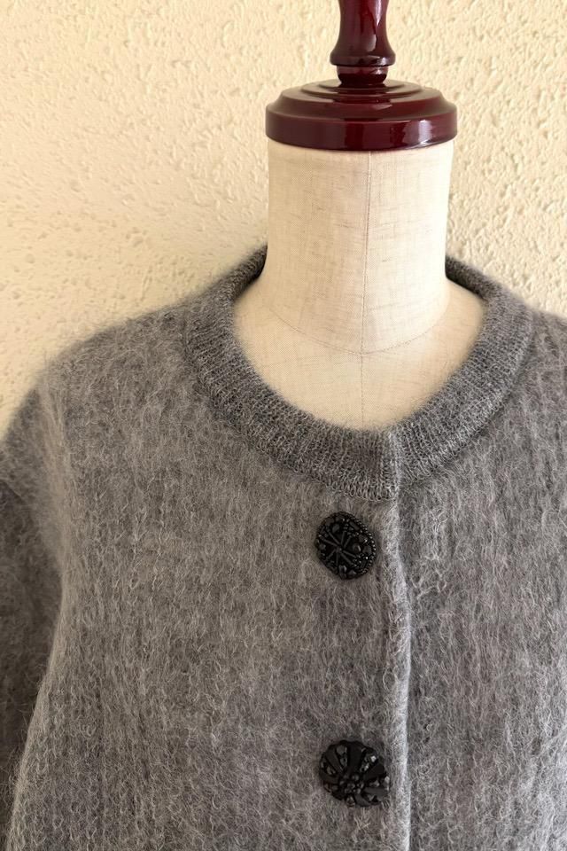 Heriter アンティークボタンモヘアカーディガン チャコール