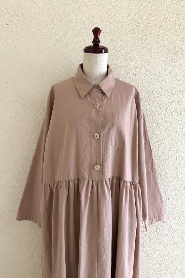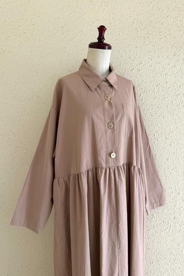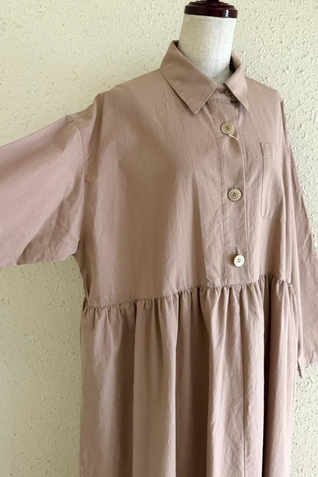 衿と大きめボタンが少し懐かしいデザインのワンピース。