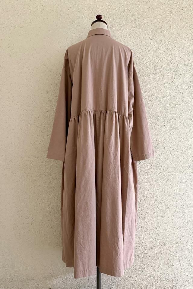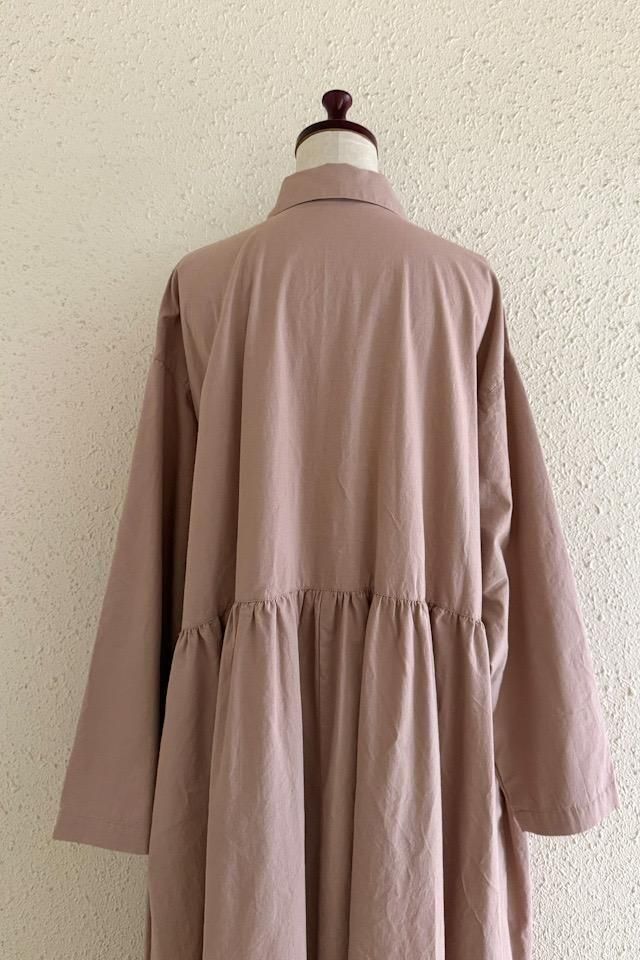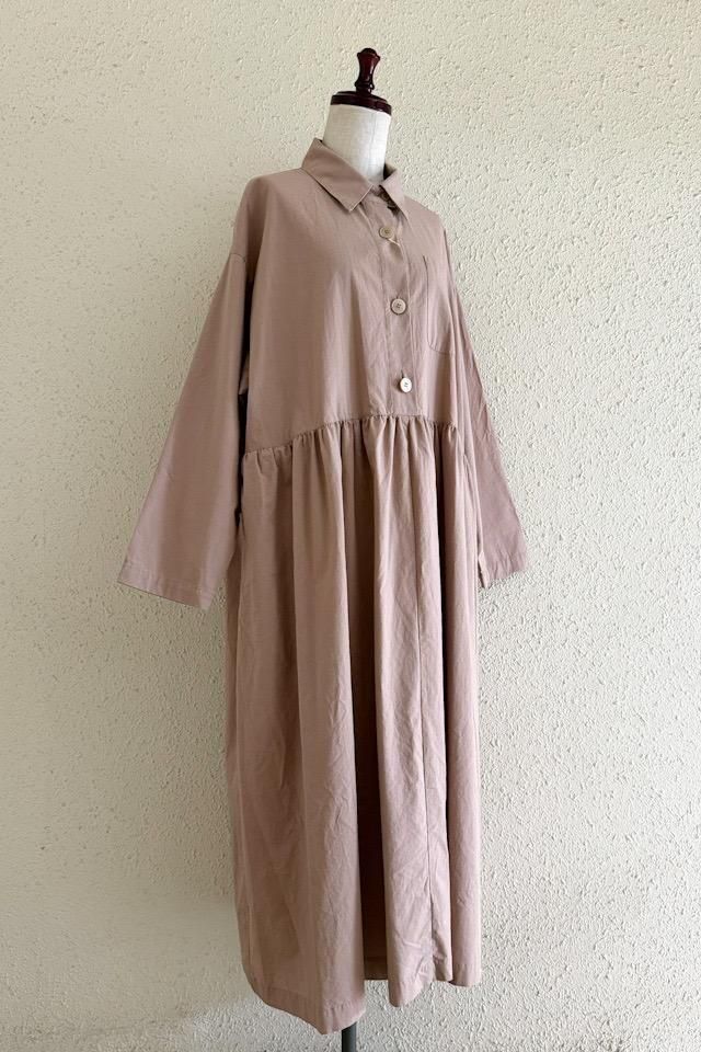 レギュラーカラーとギャザーの緩やかなシルエットのバランスが絶妙。