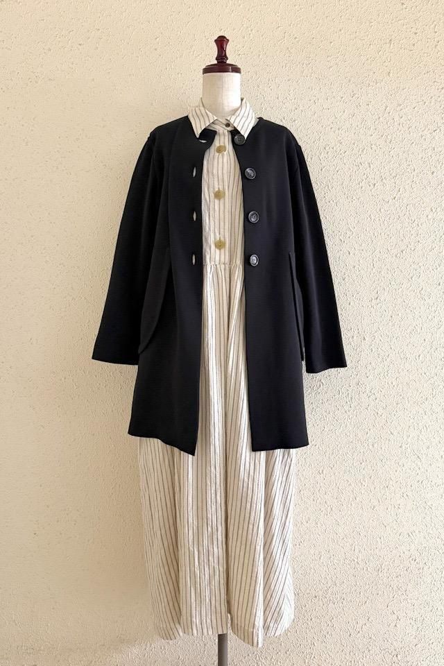 衿と大きめボタンが少し懐かしいデザインのワンピース。