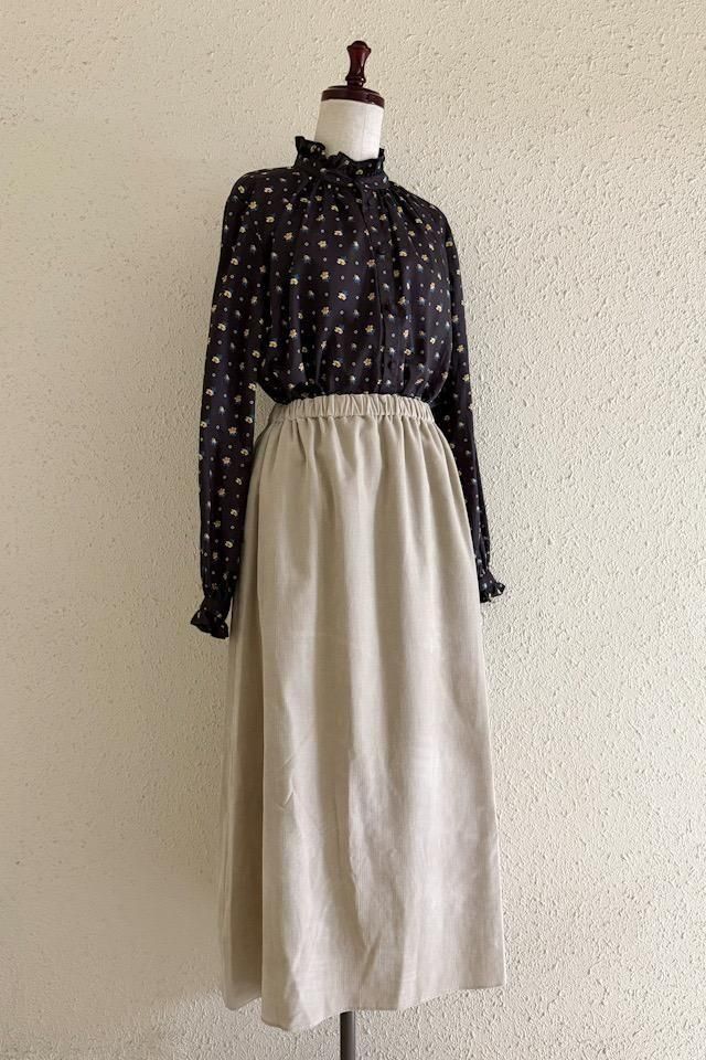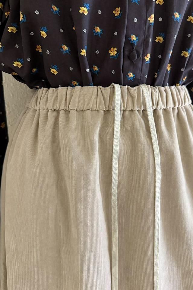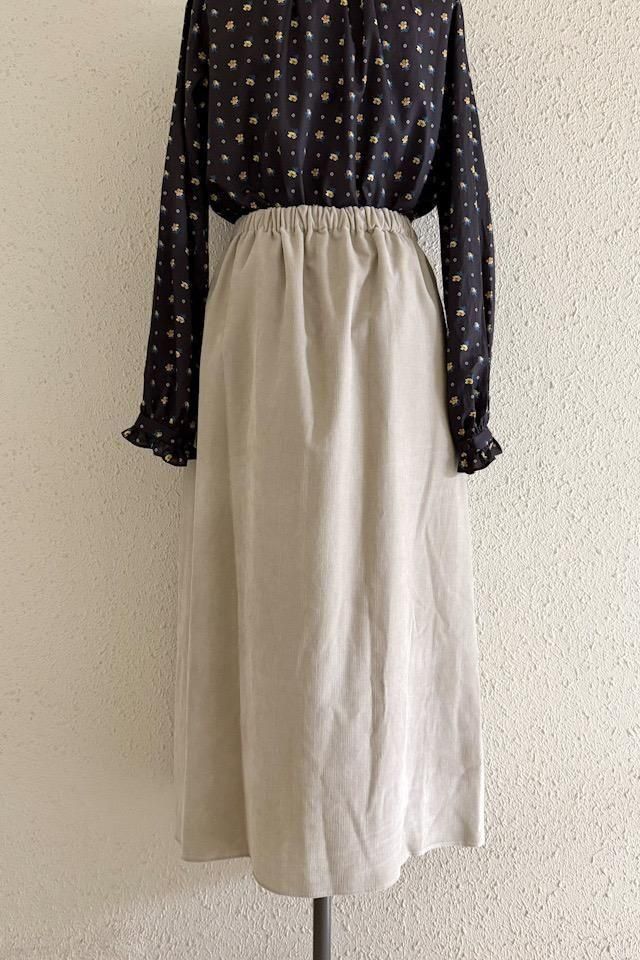 カジュアルすぎない優しくフェミニンな雰囲気のAラインスカート。