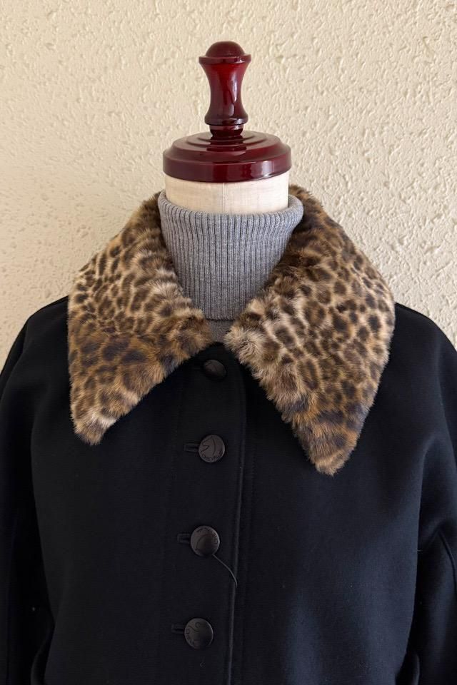 レオパード柄のフェイクファーはファスナーで取り外し可能、