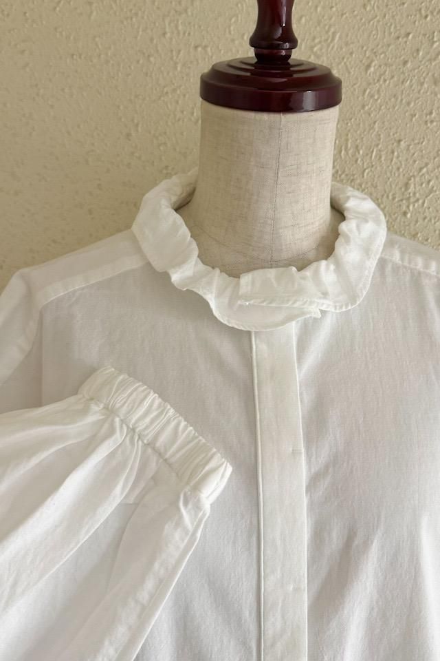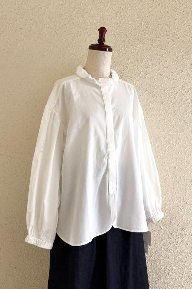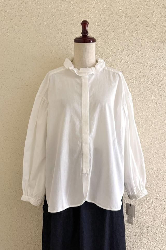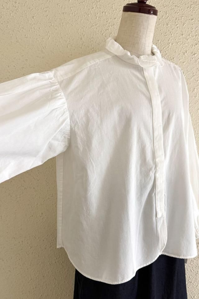 Hands of creation 高密度ヴィンテージブロードフリル比翼仕立てブラウス オフ