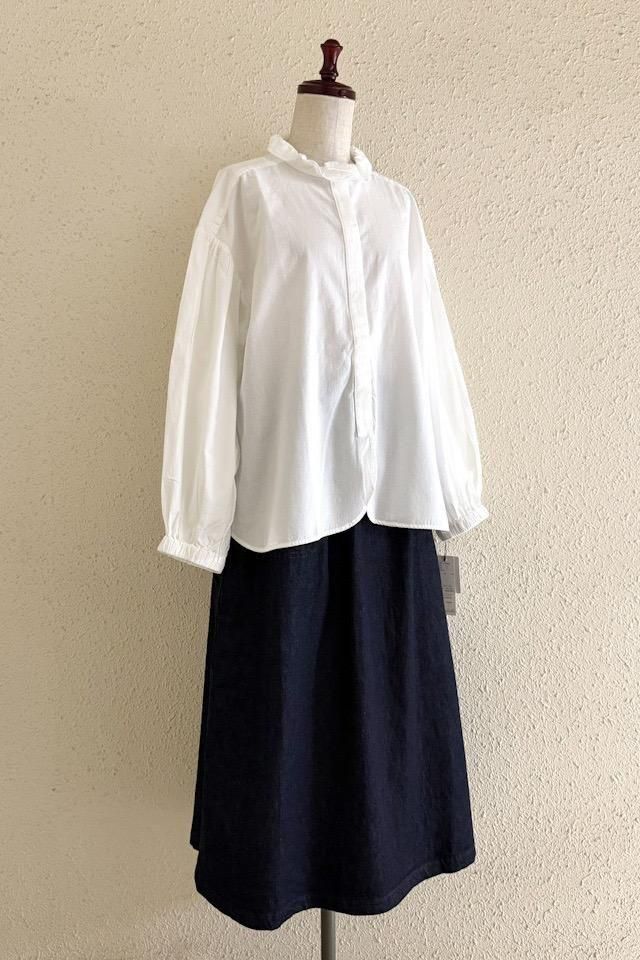 程よい厚みとハリ感のあるコットンブロードのシャツブラウス。