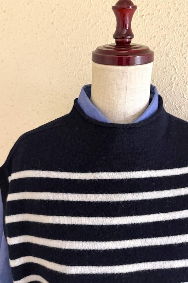 メリノウール12Gファインウールボーダーはホールガーメント仕立て。