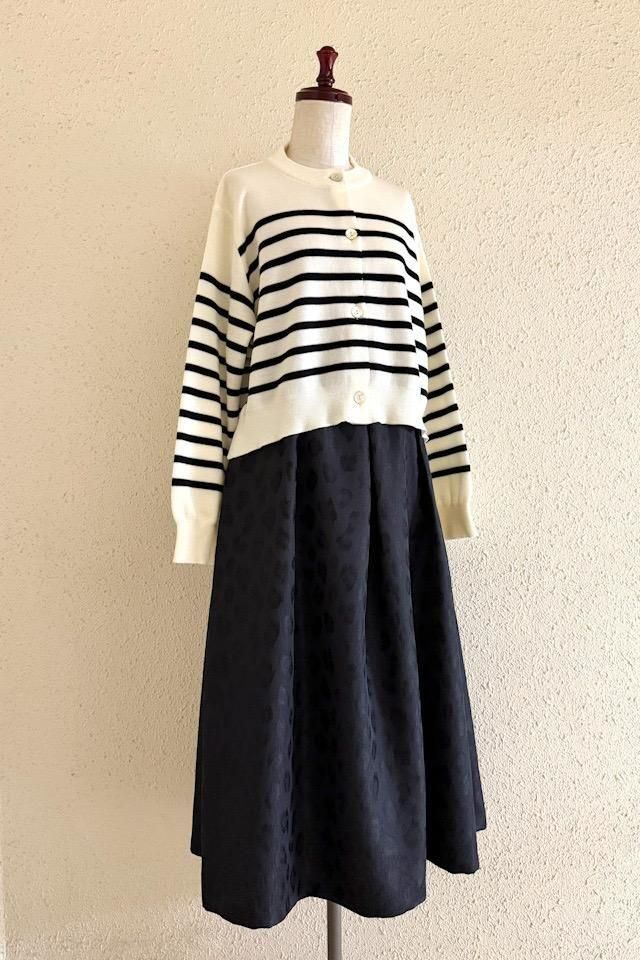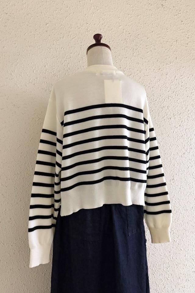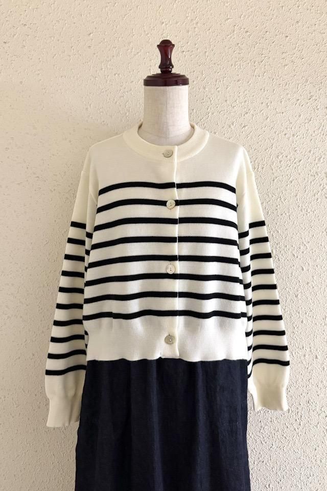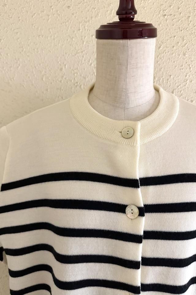 Porter des boutons fondantニットボーダーショートカーディガン オフ×ブラック