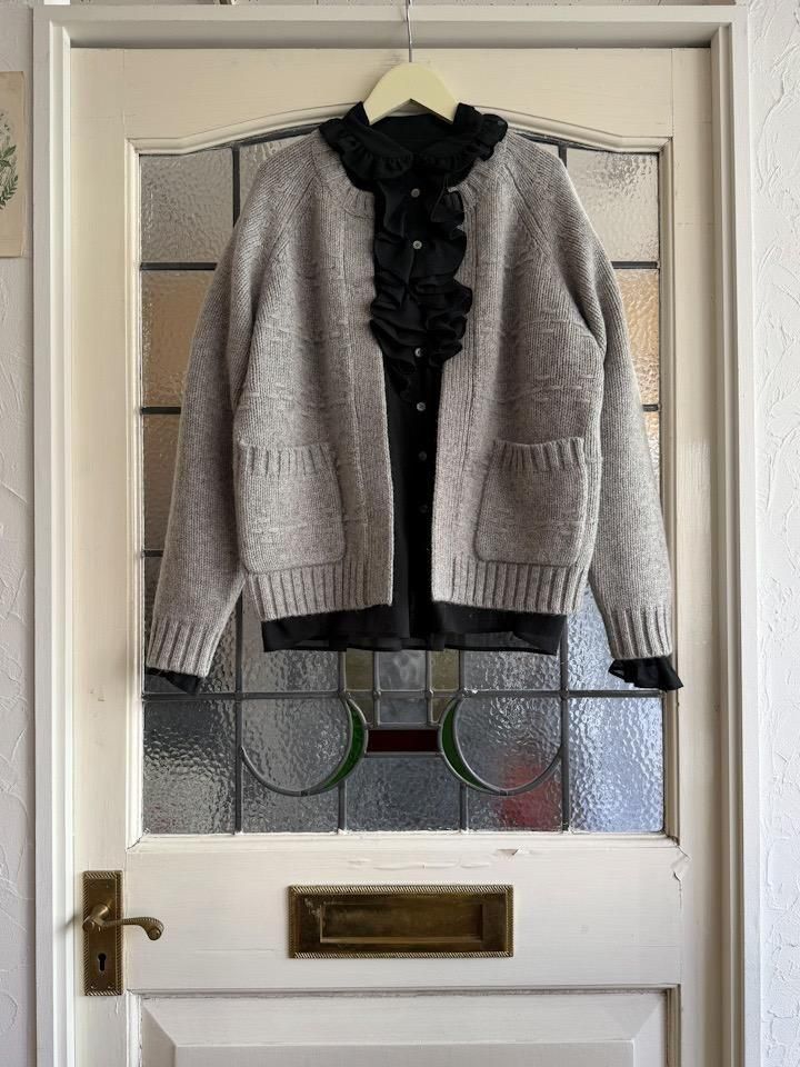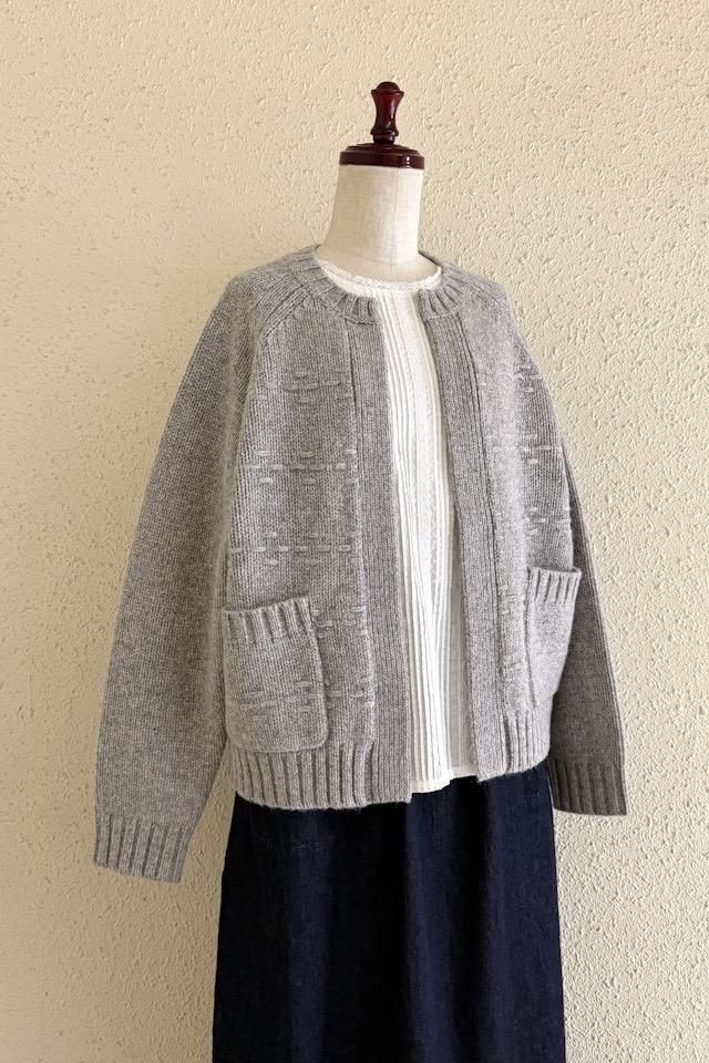 a piece of library シルキーウールアイランドカーデ ライトグレー