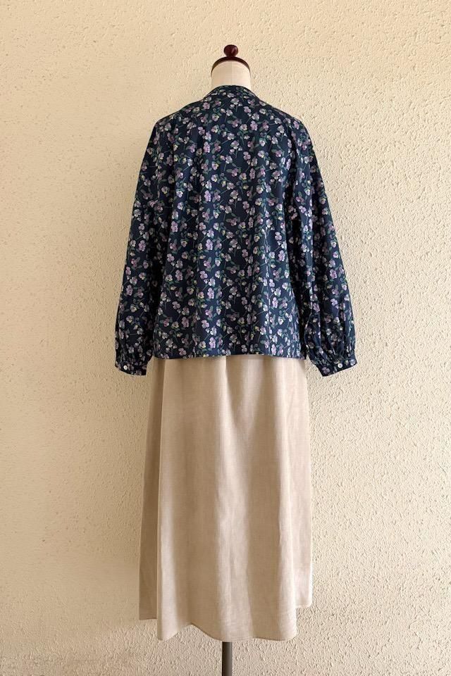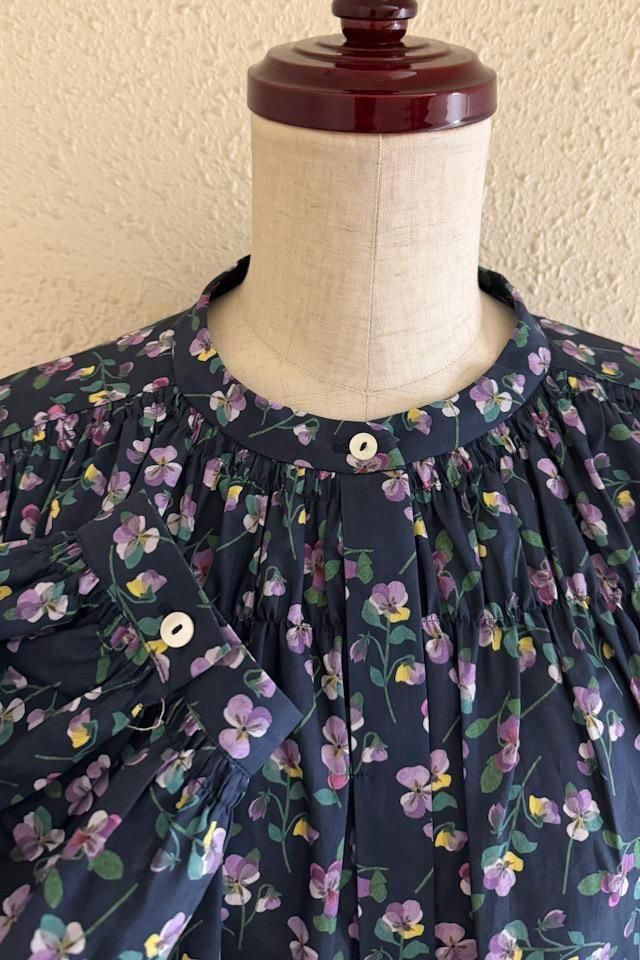 sosotto LIBERTYタナローン胸シャーリングブラウス ネイビー