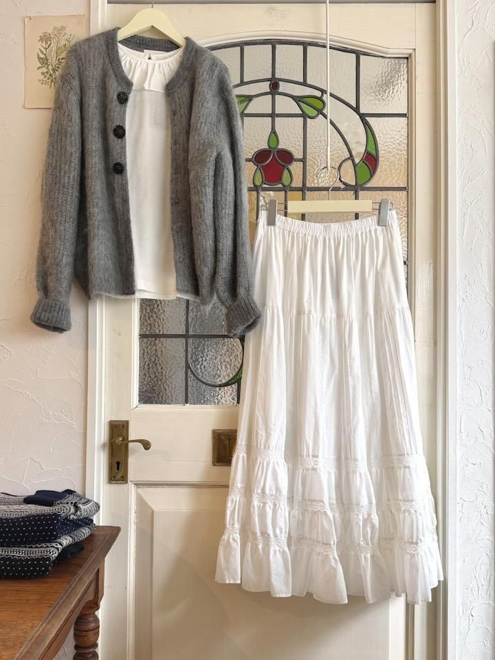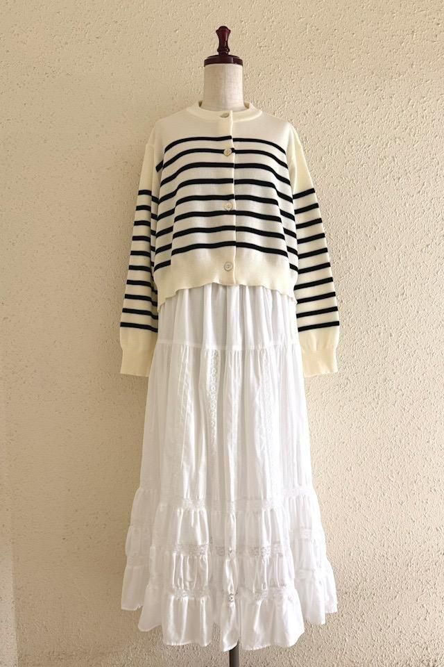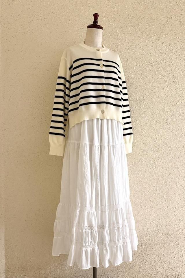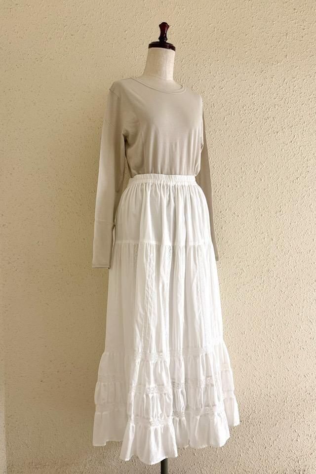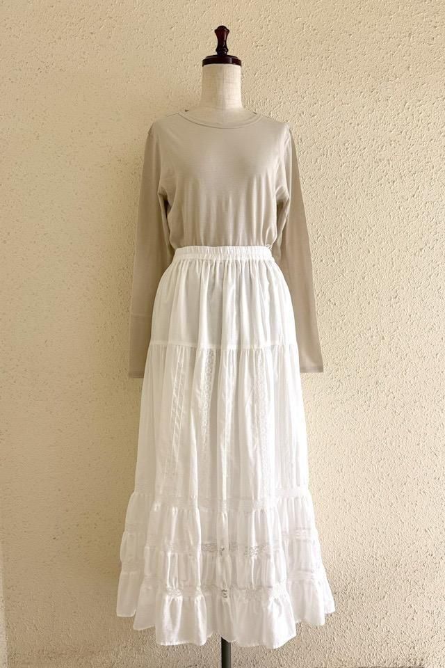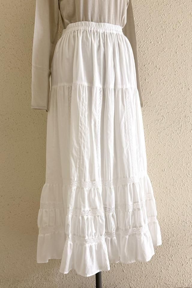 アンティークのようなデザインが魅力のコットン素材のスカート。