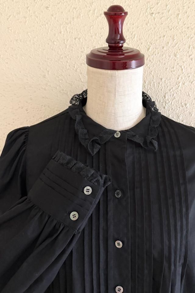 小さな衿や袖口にレースをあしらったアンティークブラウスのようなクラシカルなデザイン。