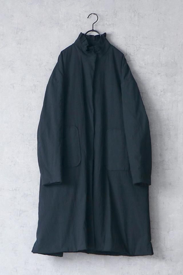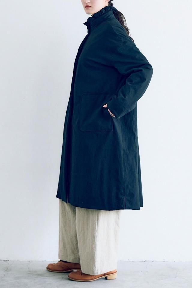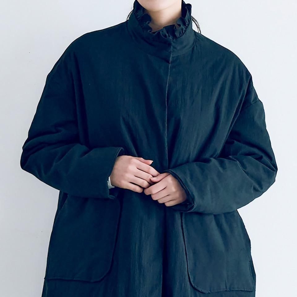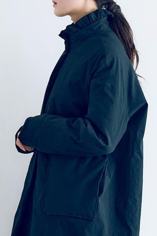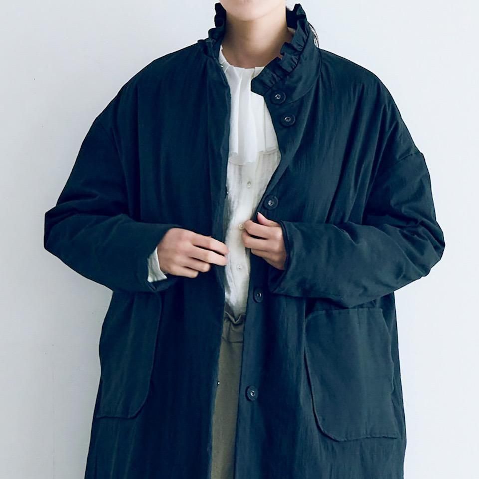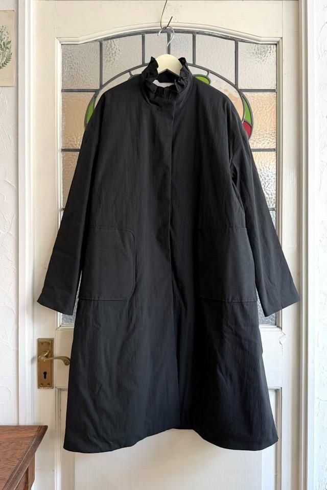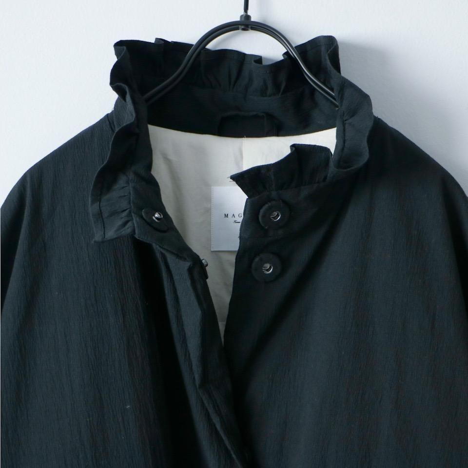 MAGALI オールドコットンナイロンリネンフリルカラーパディットコート ブラック