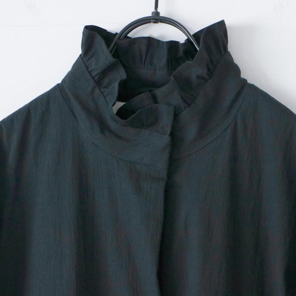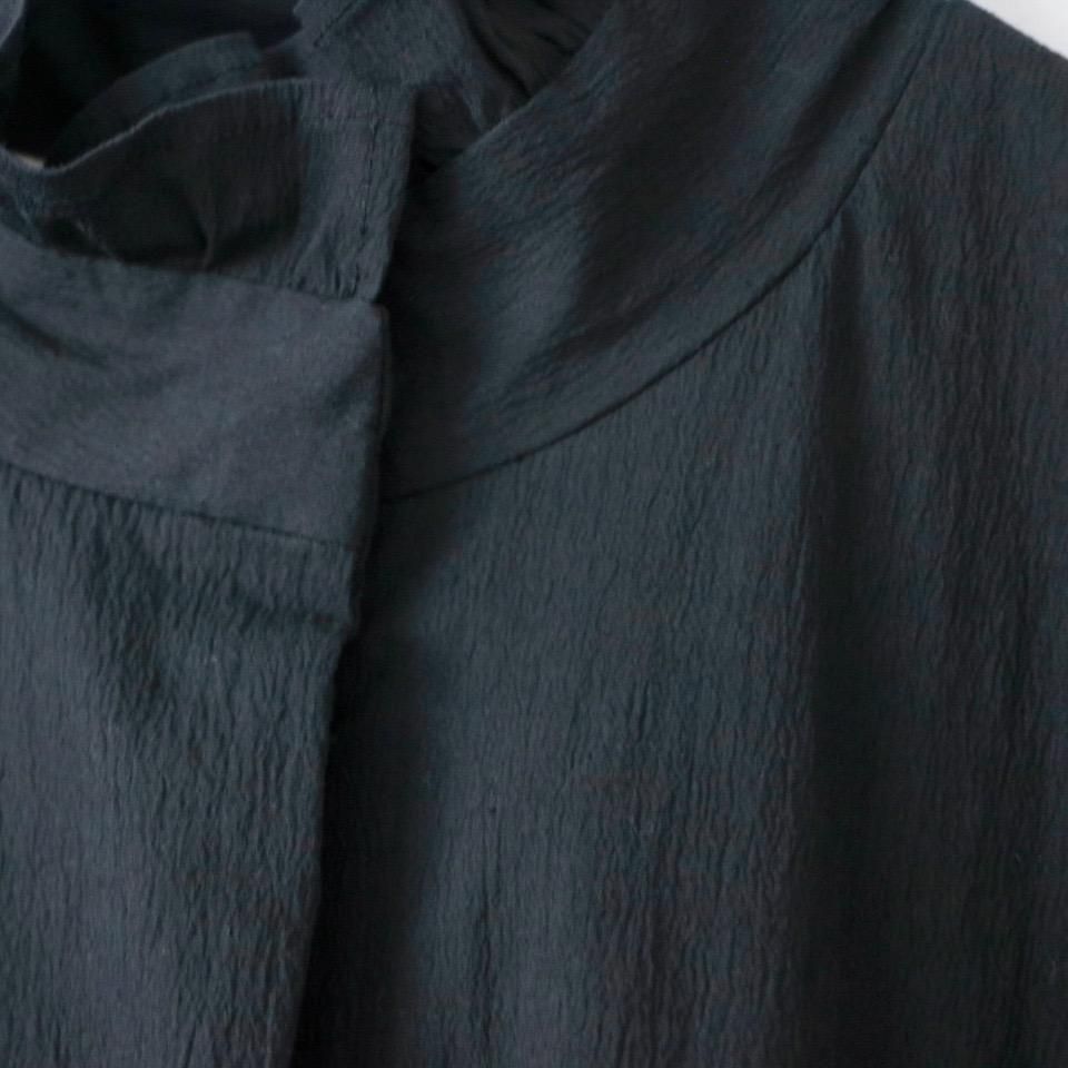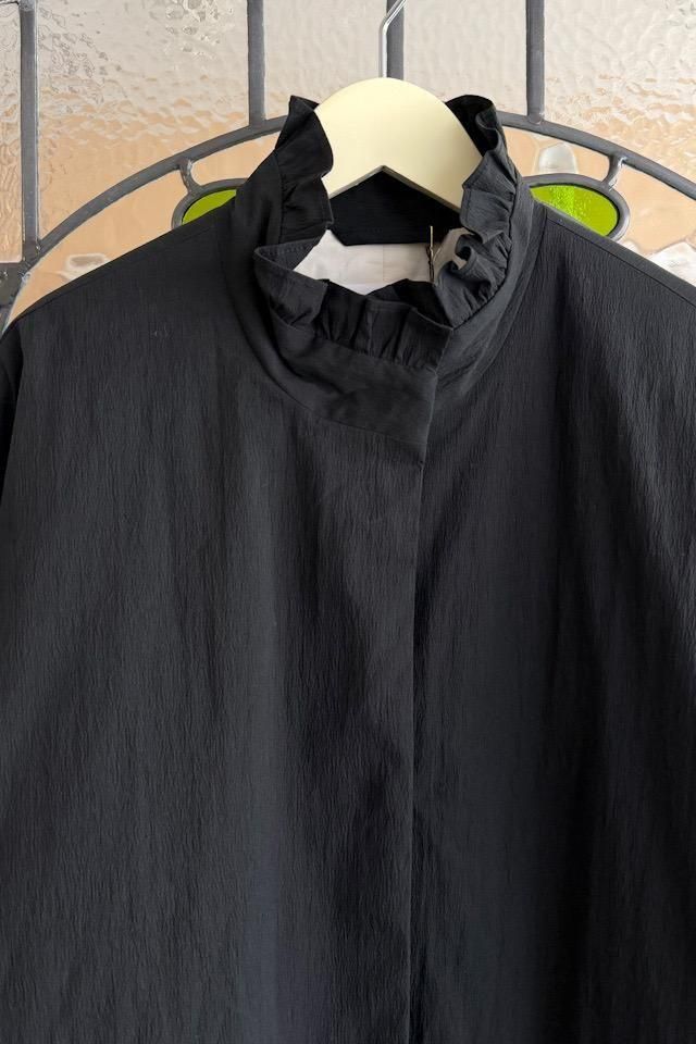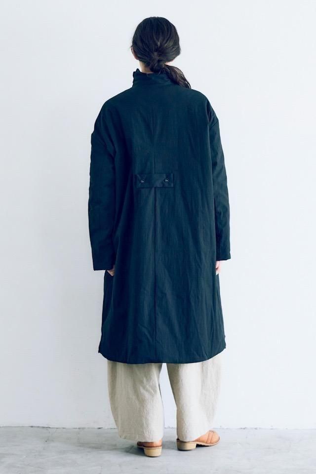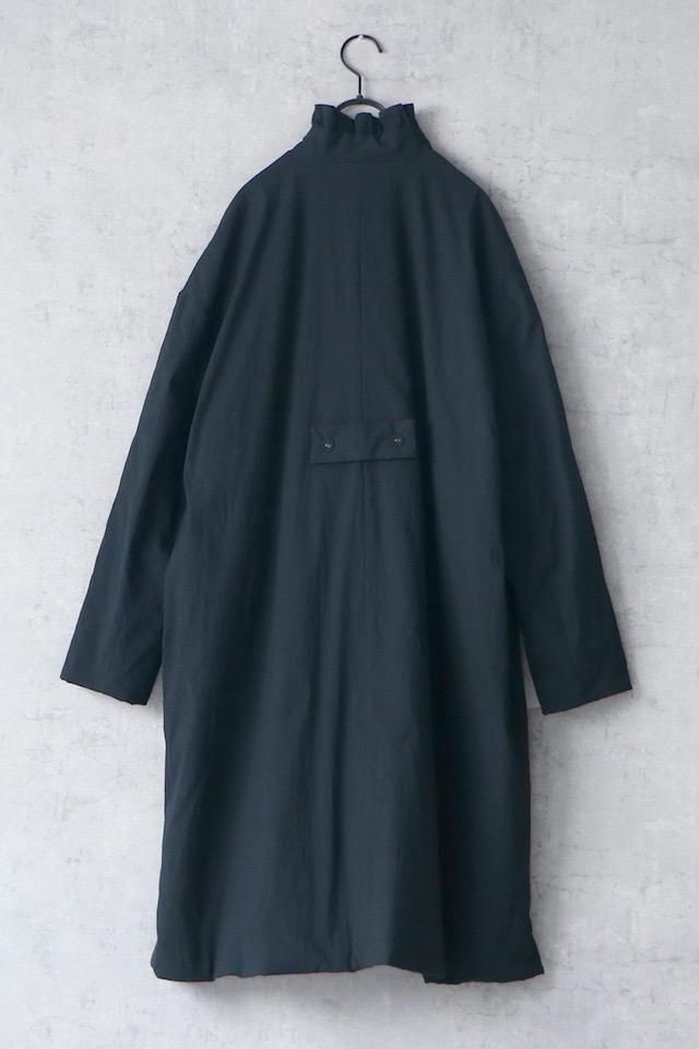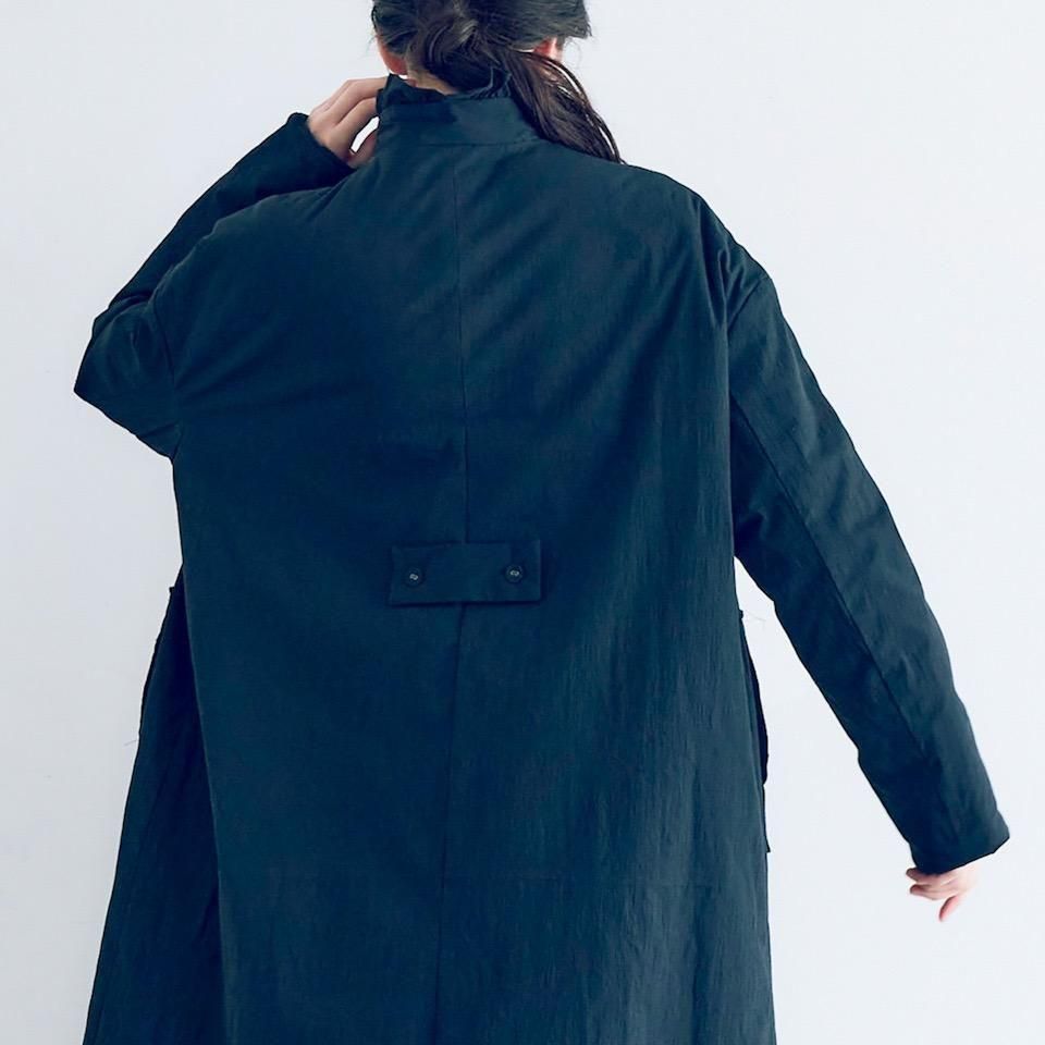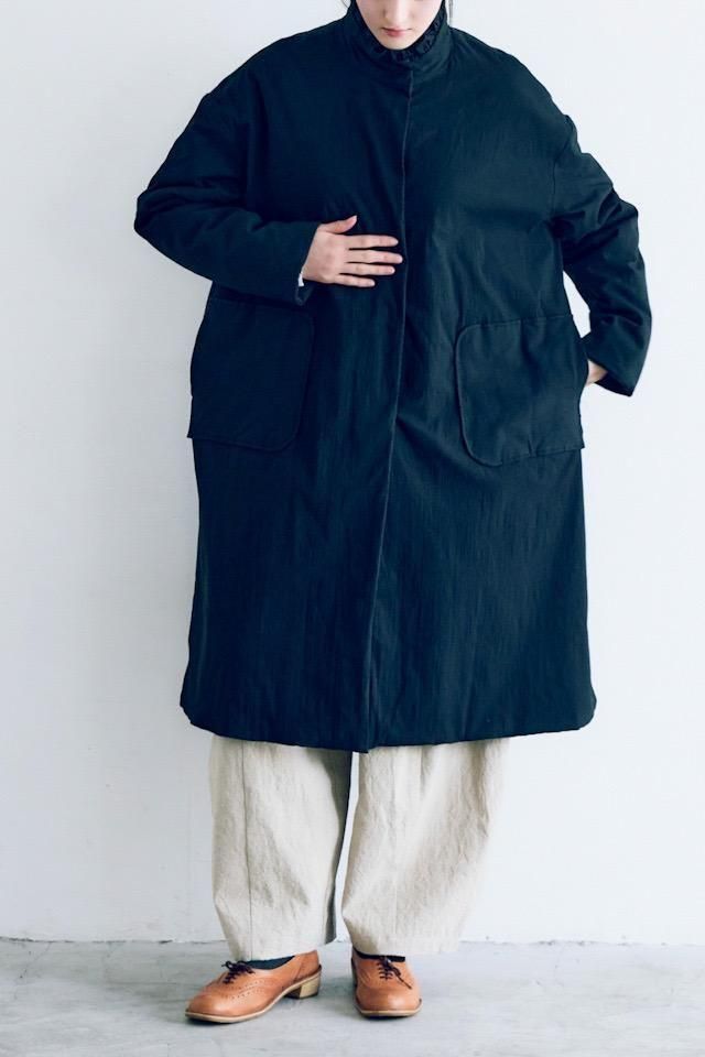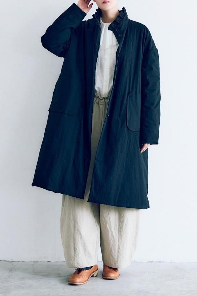MAGALI オールドコットンナイロンリネンフリルカラーパディットコート ブラック