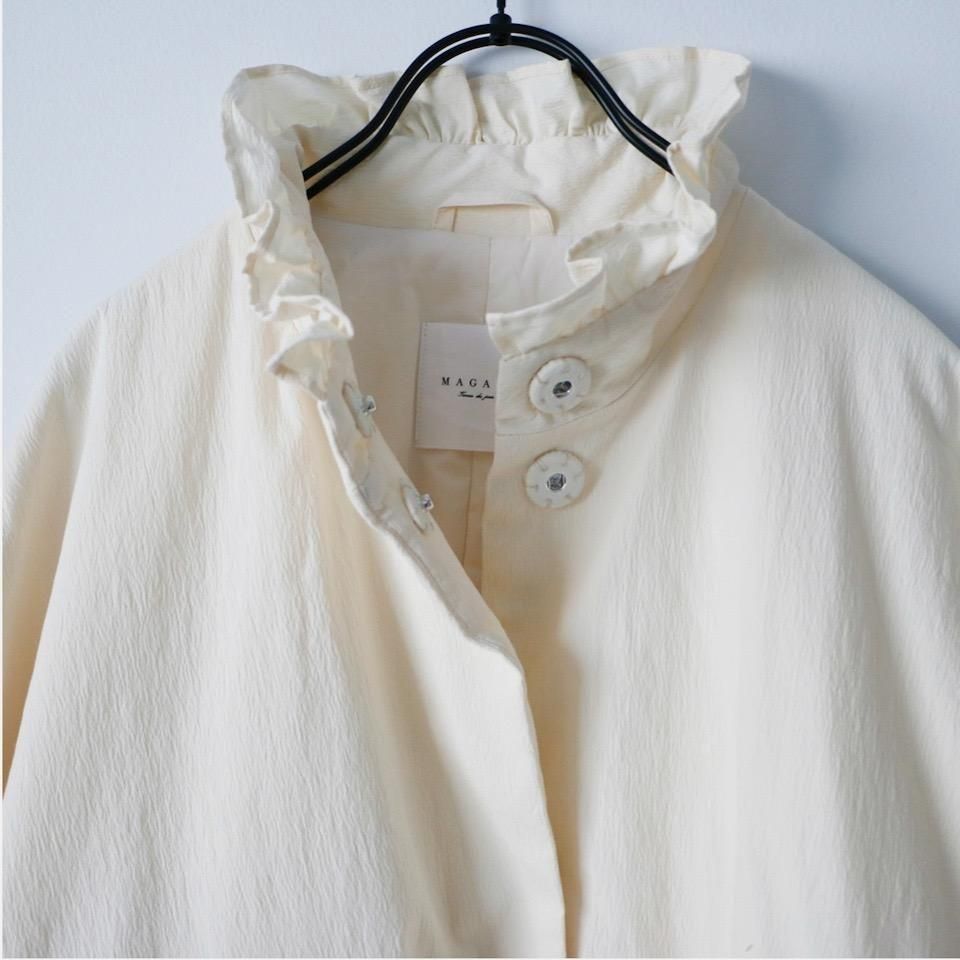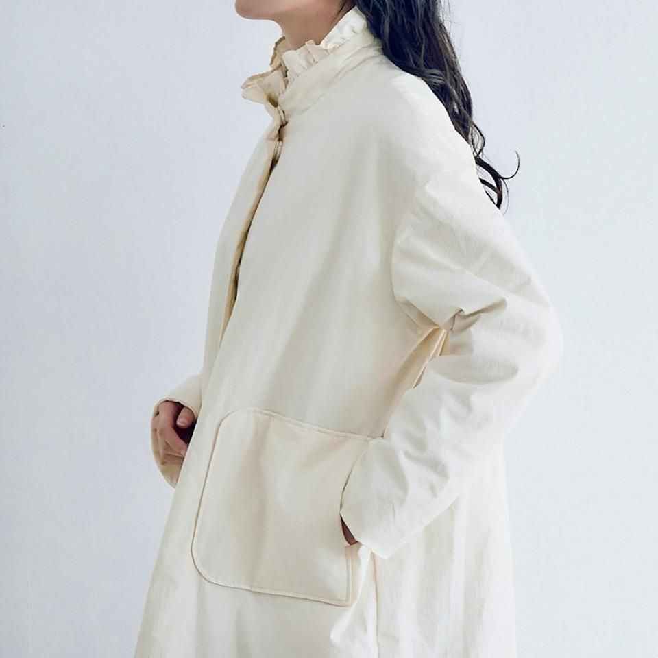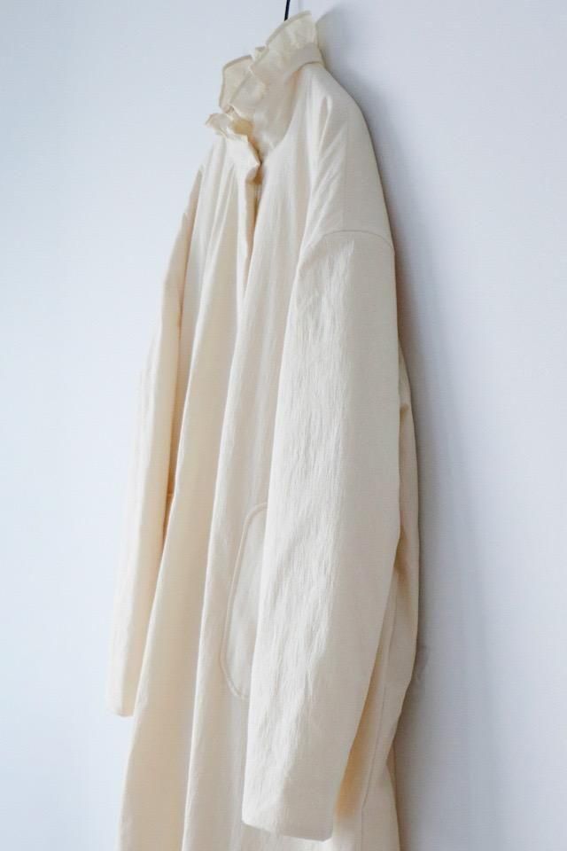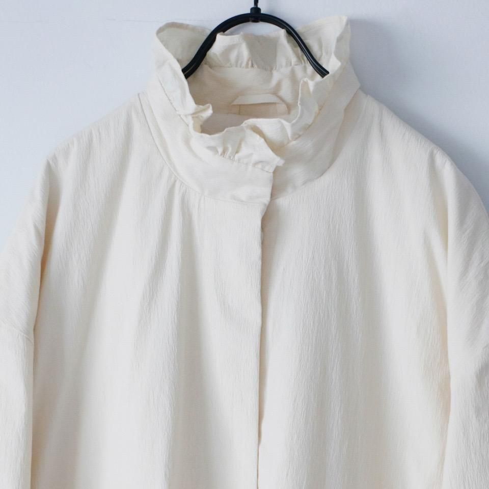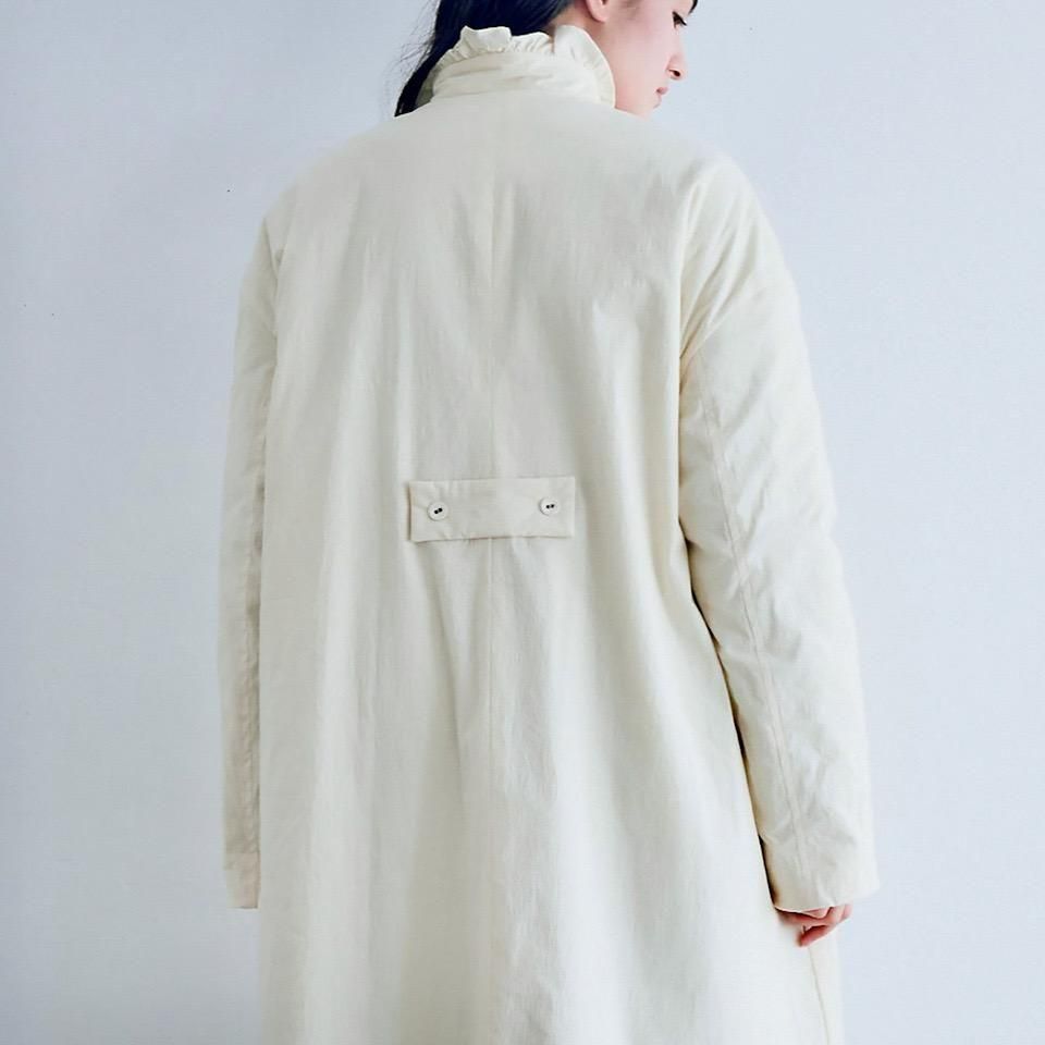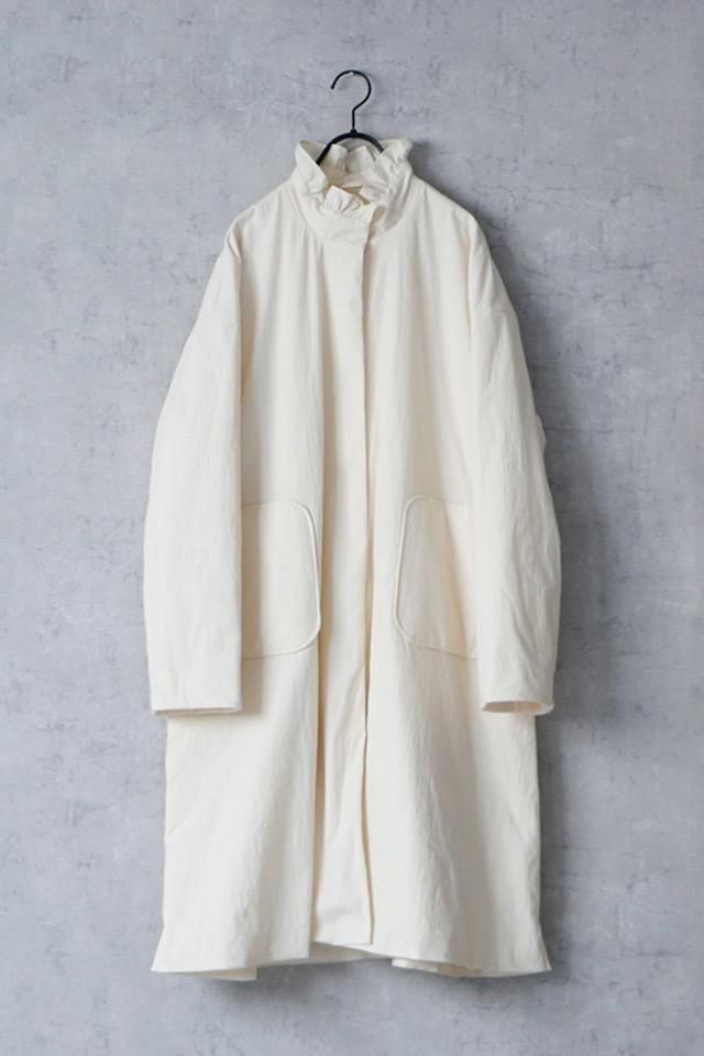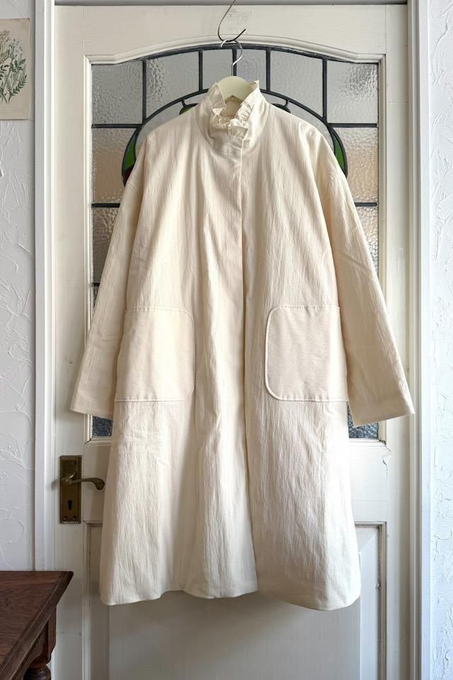 MAGALI オールドコットンナイロンリネンフリルカラーパディットコート アイボリー