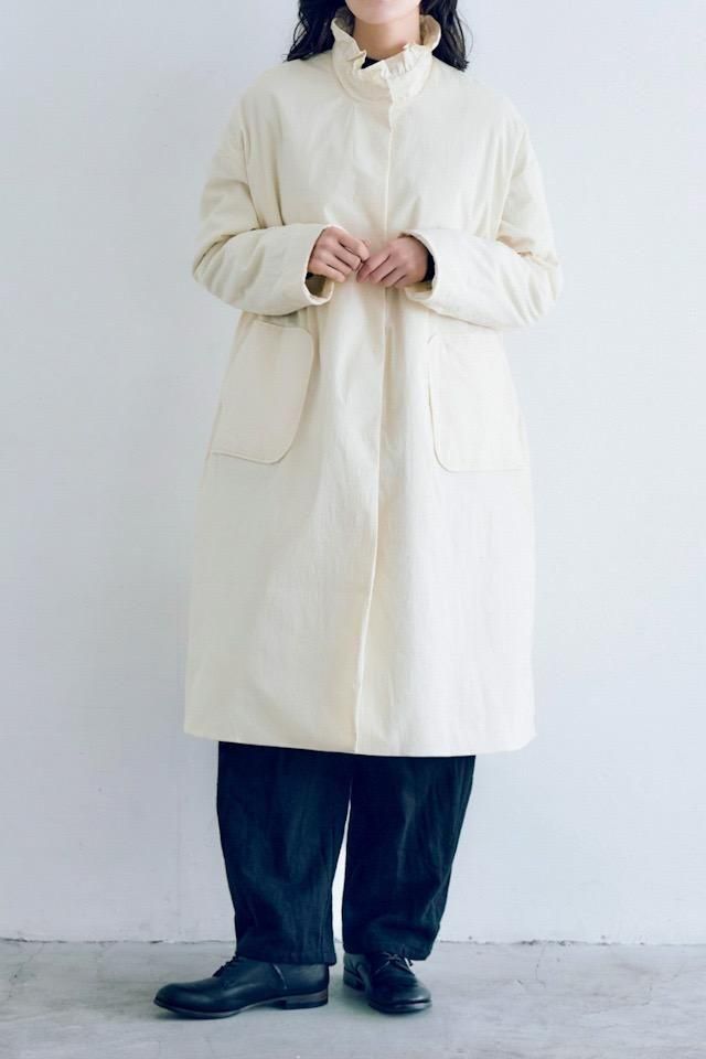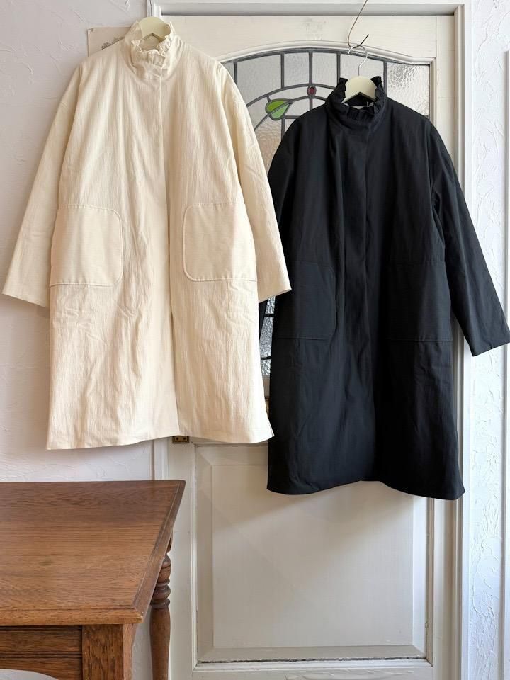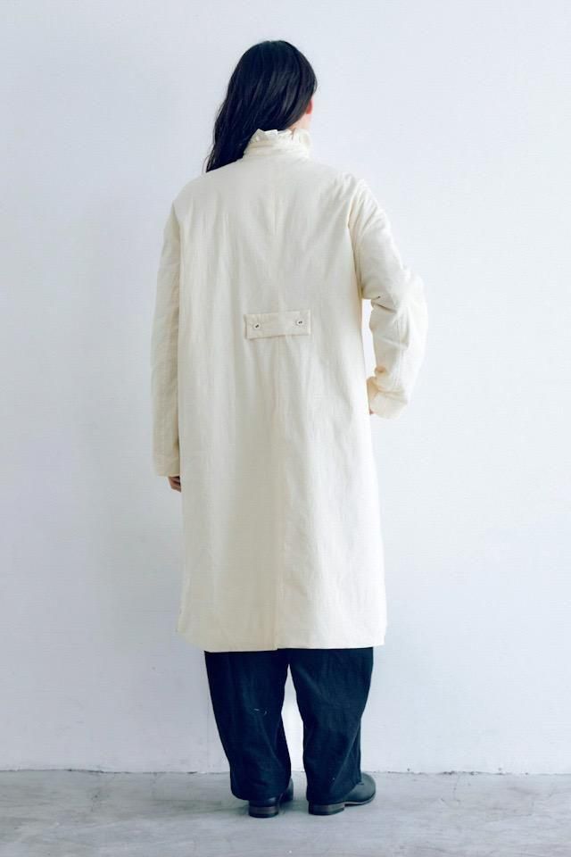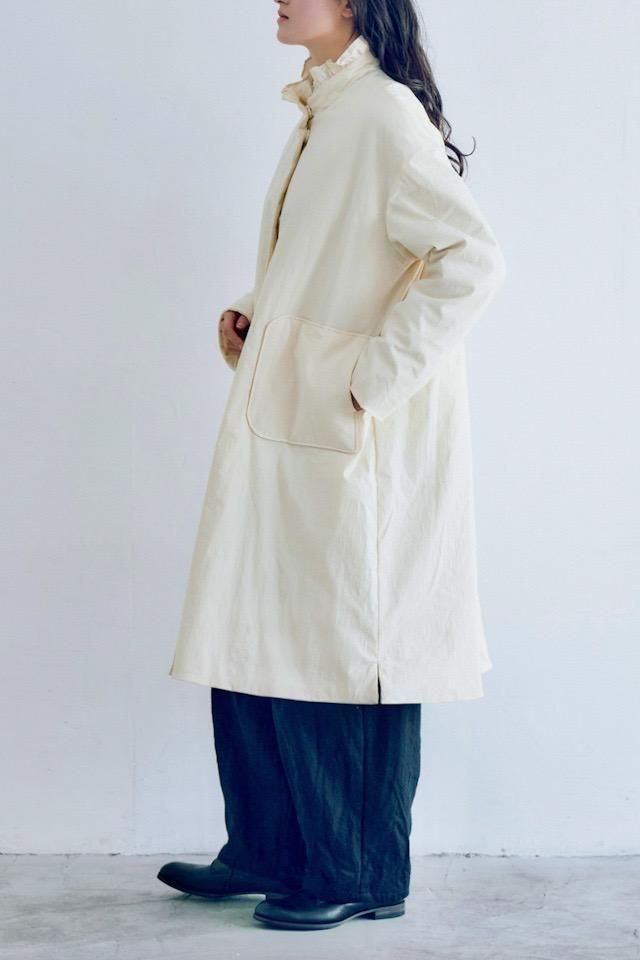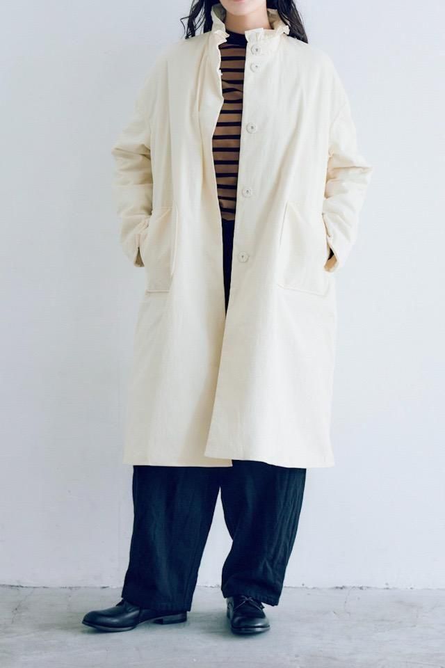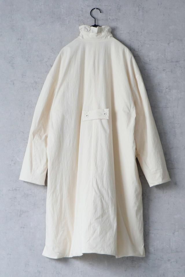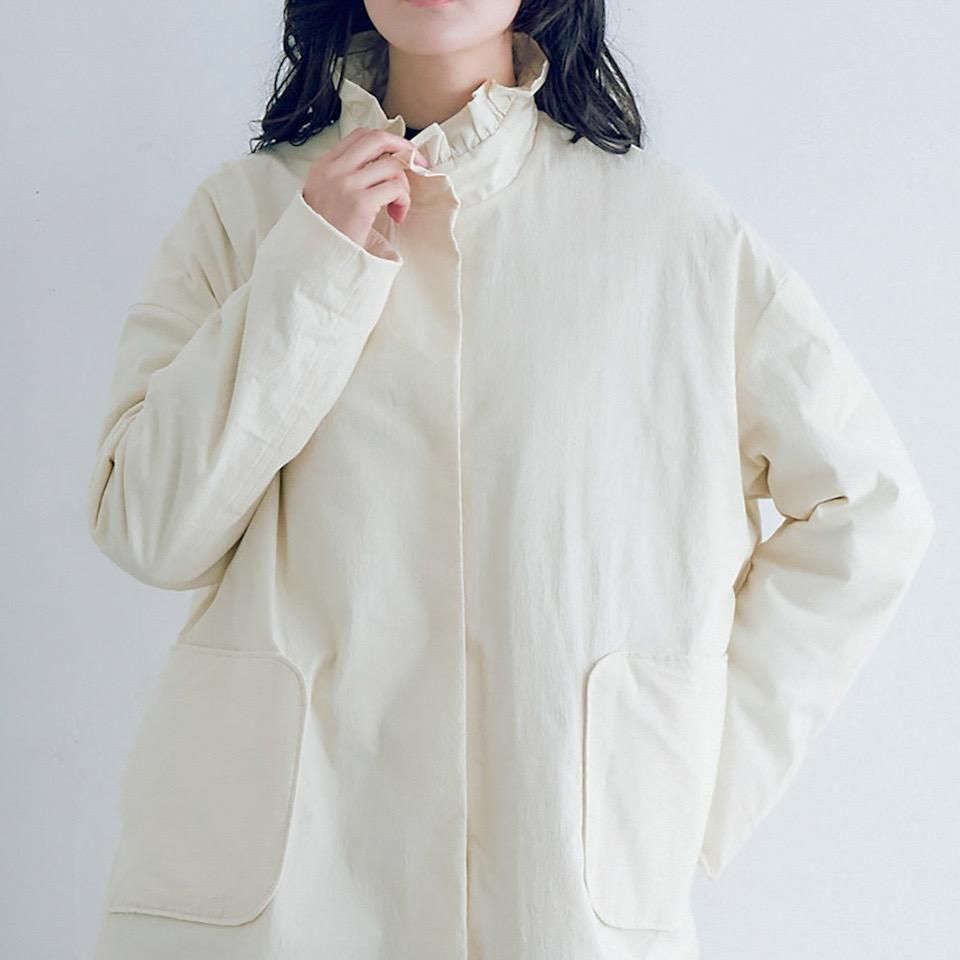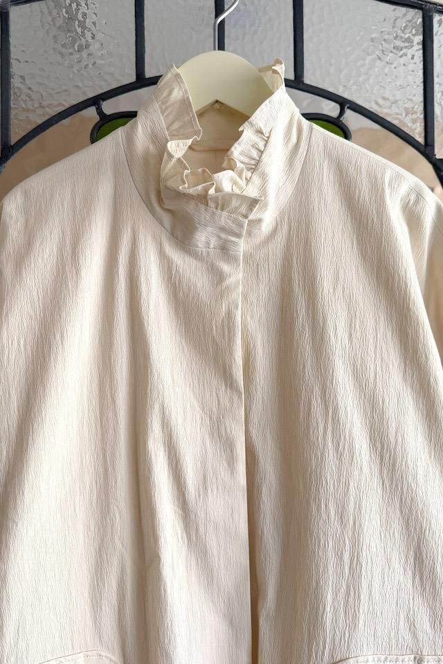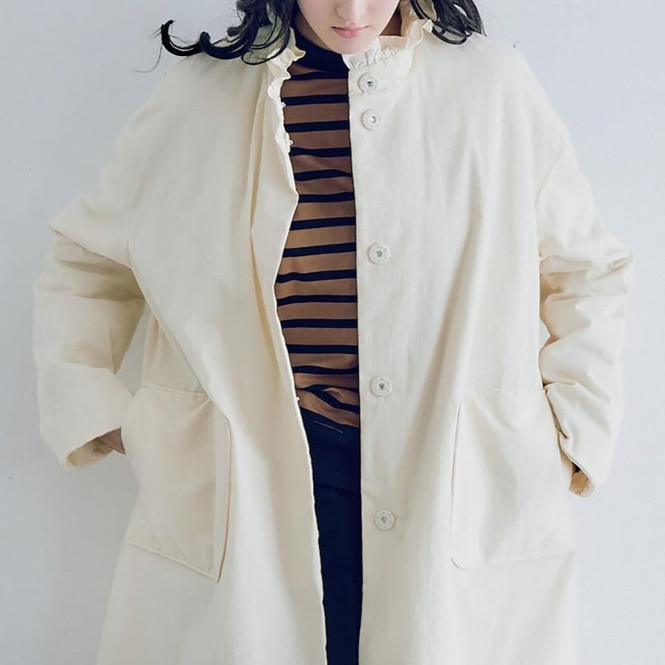 MAGALI オールドコットンナイロンリネンフリルカラーパディットコート アイボリー
