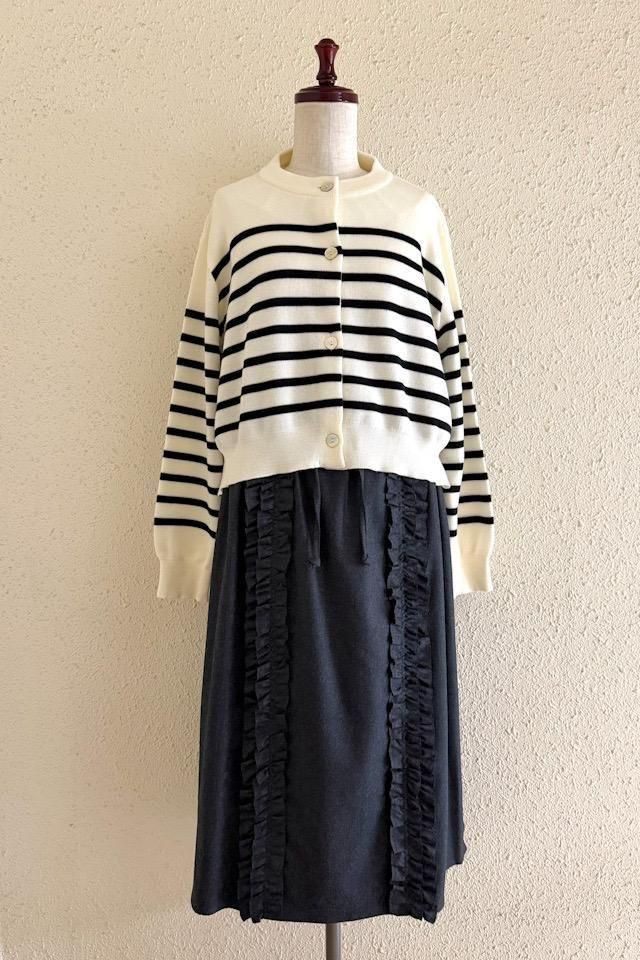 サイドにも切り替えがひらりと付いているので、ラインを拾わずきれいなシルエットで着ていただけます。