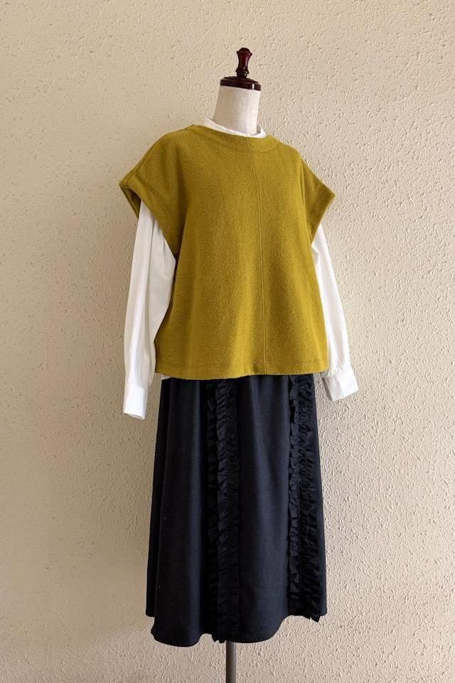 ウールリング糸の圧縮ウールを使用した軽くて暖かなベストです。