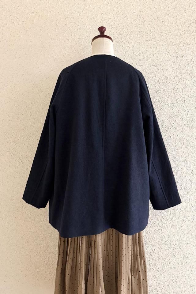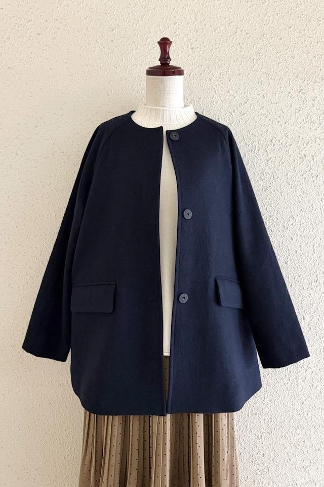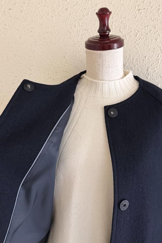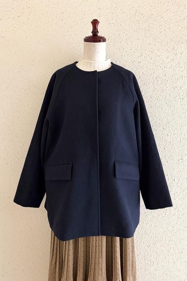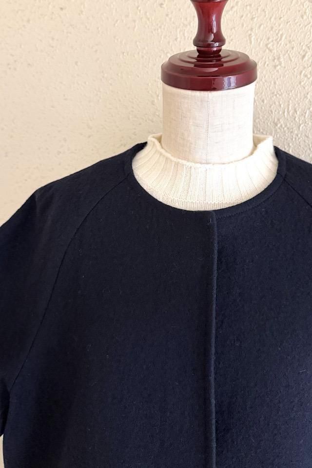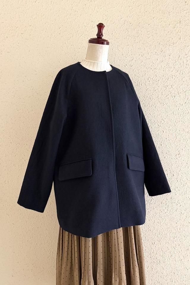 Hands of creation 2/48サキソニークルーネックセミAラインコート ブラックネイビー