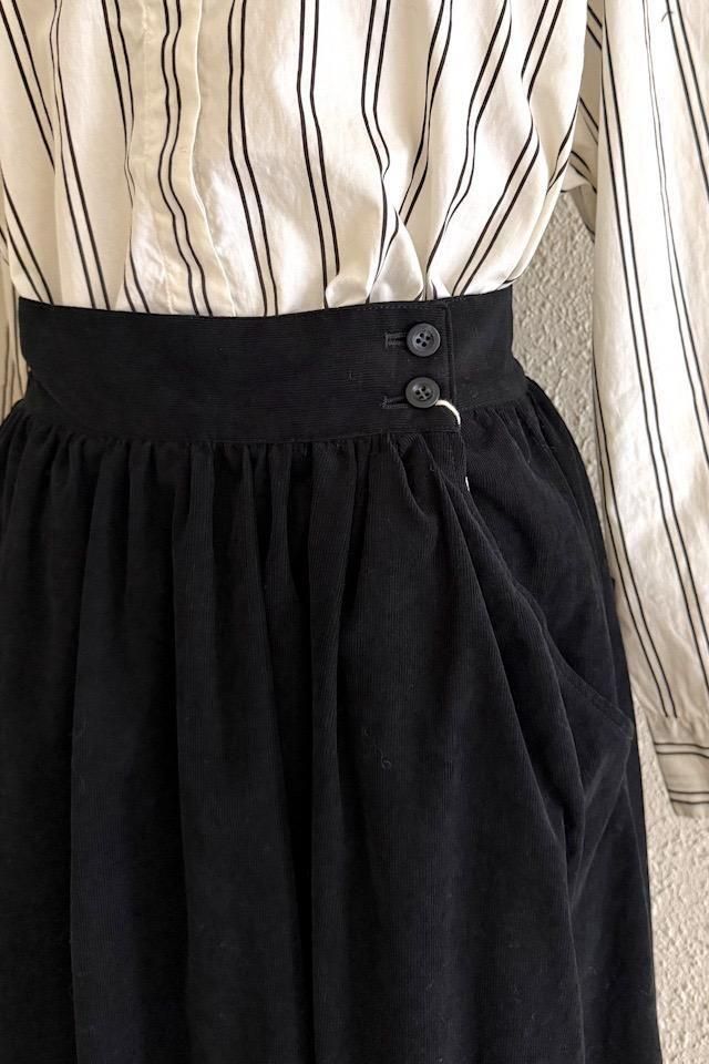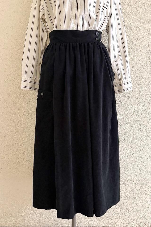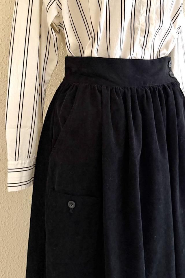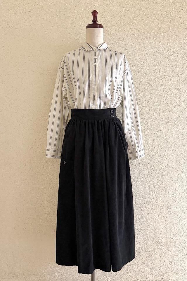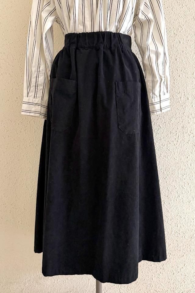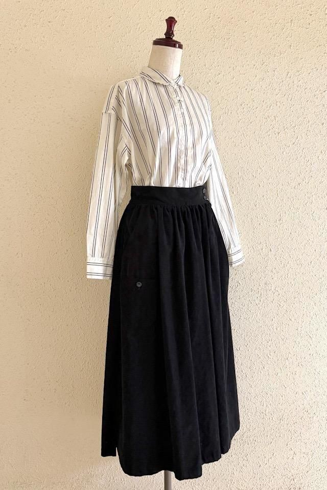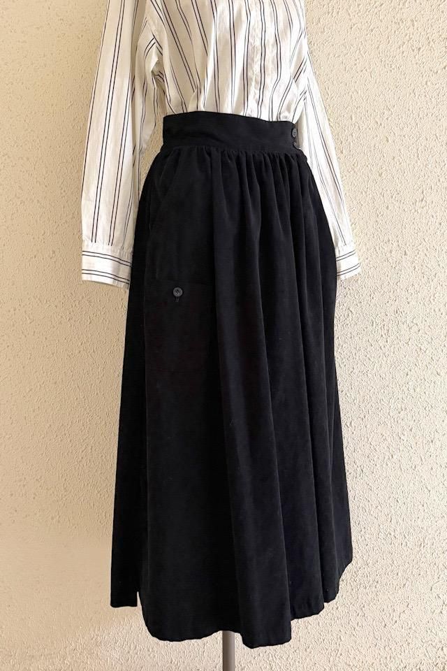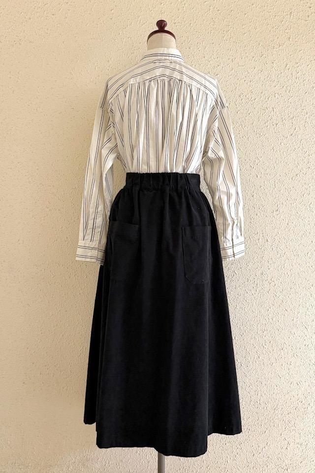 ウエスト前側には細かなギャザーを施し、ウエスト後ろはゴム仕様、