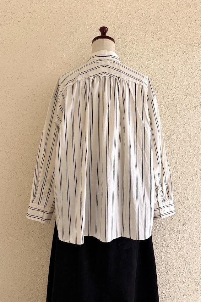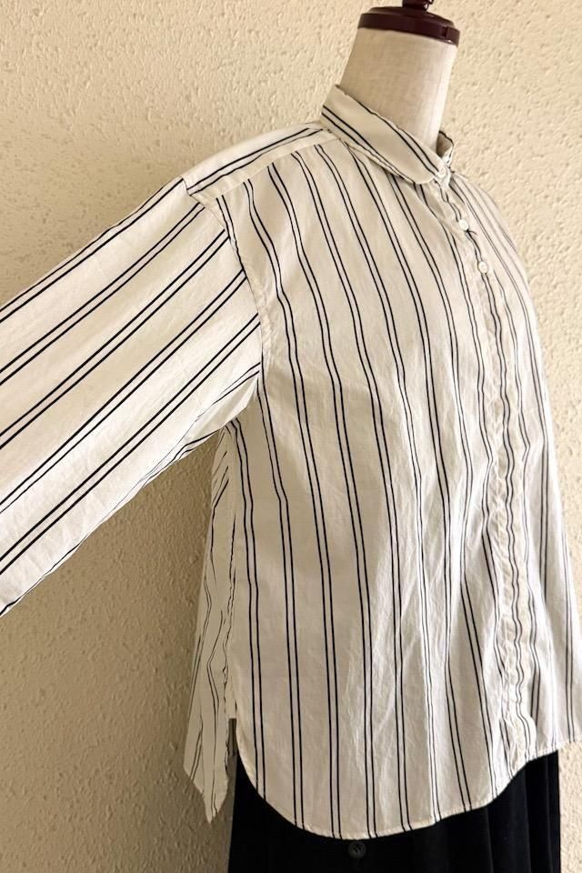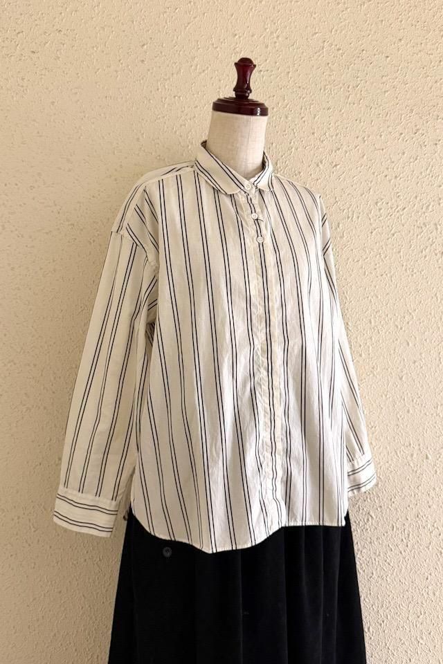 Hands of creation Wライン stripe pt ラウンドカラーシャツ キナリ
