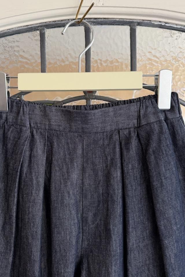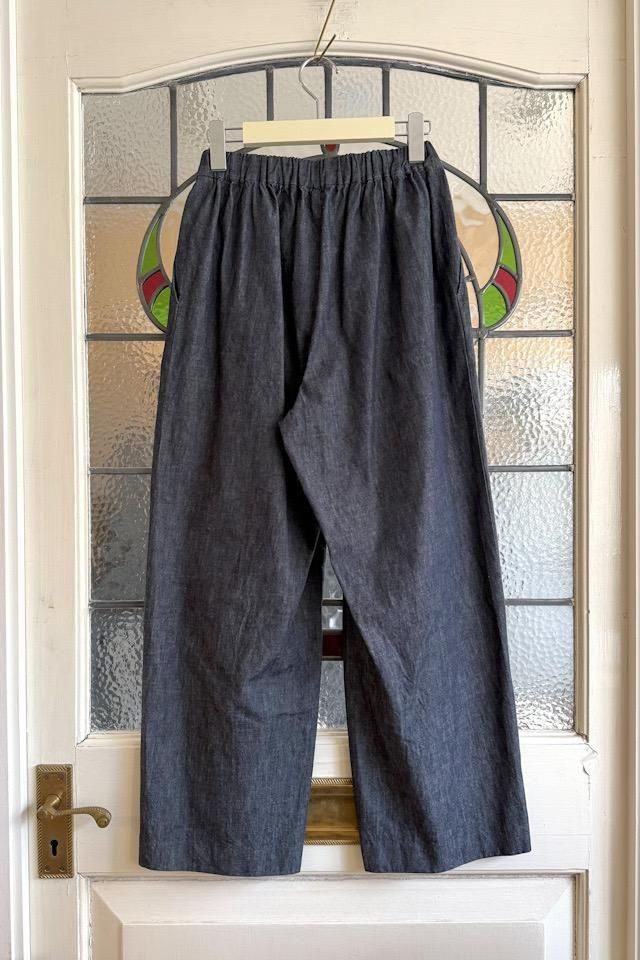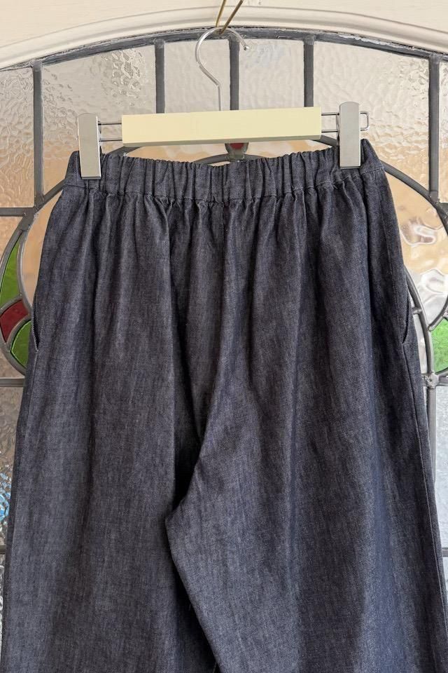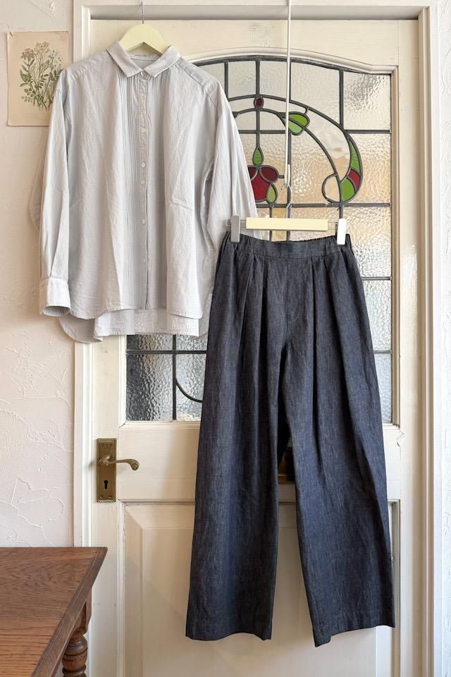 通常のデニムより薄手で軽く、洗いをかけて柔らかな着心地。