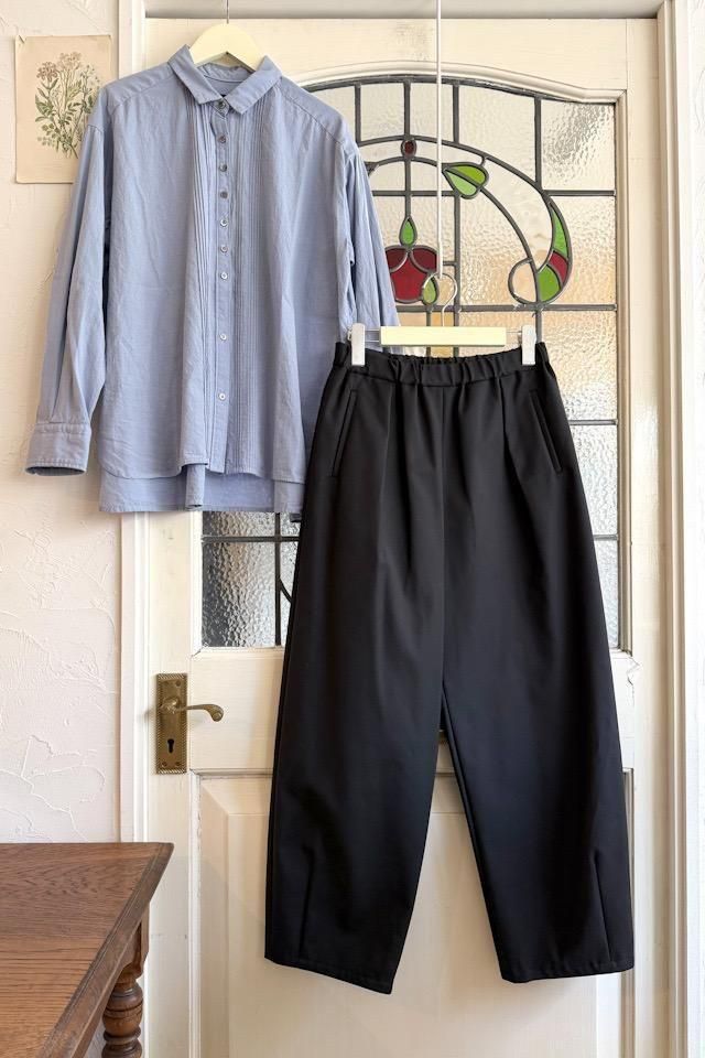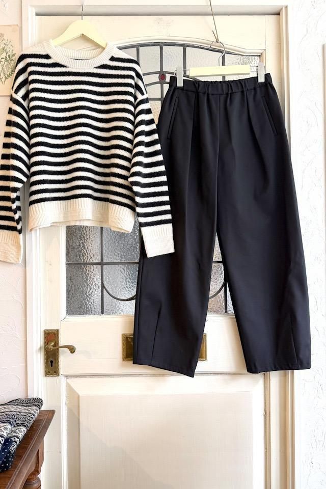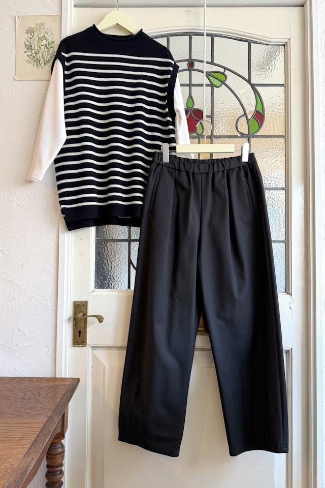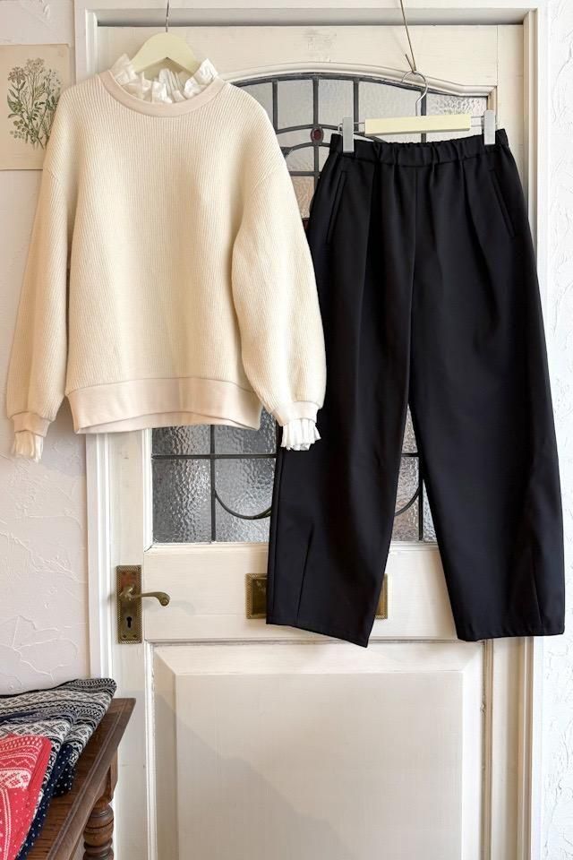 冬から長いシーズン着回しができるイージーパンツ。