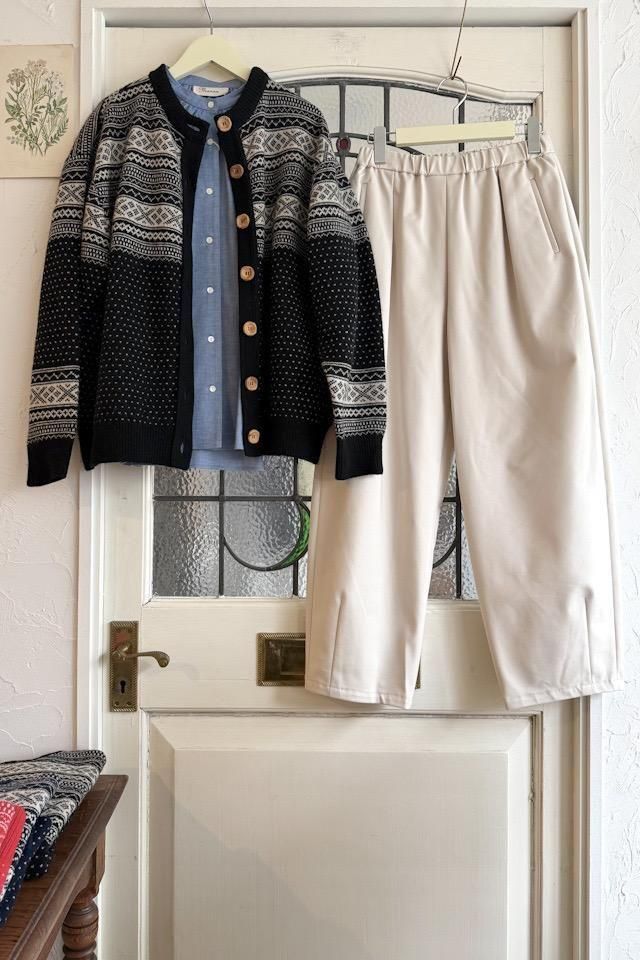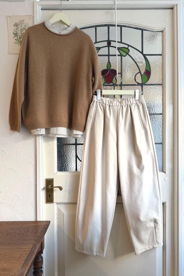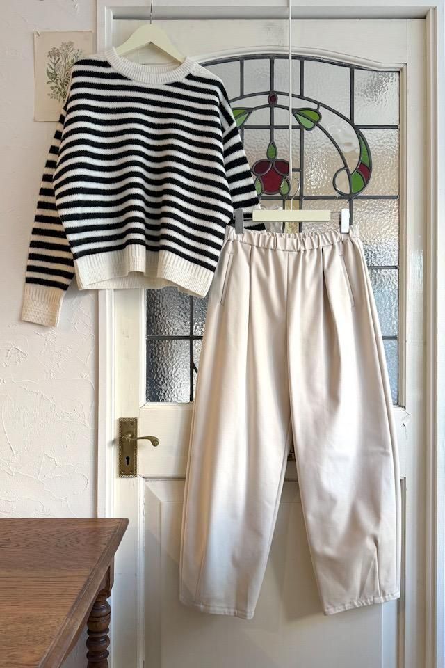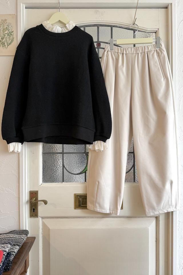 冬から長いシーズン着回しができるイージーパンツ。